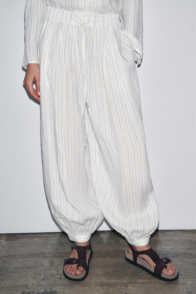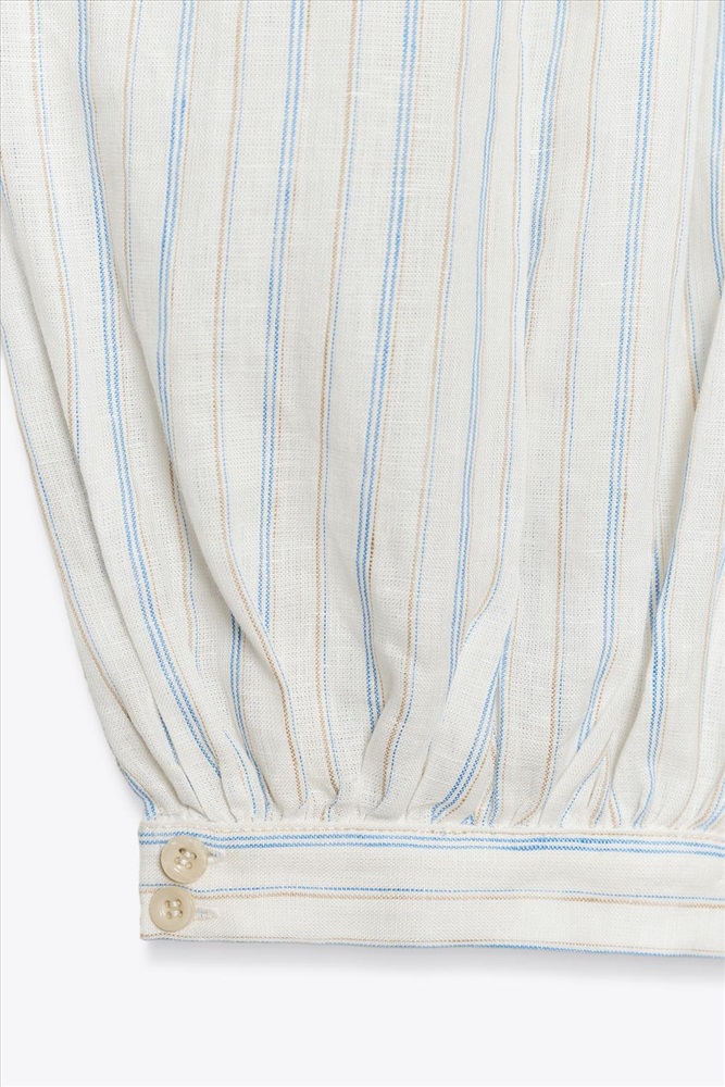 ZARA WOMAN COLLECTION COMPOSITION, CARE & ORIGIN COMPOSITION OUTER SHELL 100% linen Which contains at least: OUTER SHELL 100% certified European grown linen CERTIFIED MATERIALS CERTIFIED EUROPEAN GROWN LINEN European-grown flax-linen is grown without using genetically modified seeds and limiting the use of pesticides and fertilizers. It is produced in Western Europe and traced along the value chain, according to the EUROPEAN FLAX™ standard of the Alliance for European Flax-Linen and Hemp. CARE Caring for your garments to extend their useful life. Only wash your garments when necessary. Washing slowly deteriorates fabrics.
