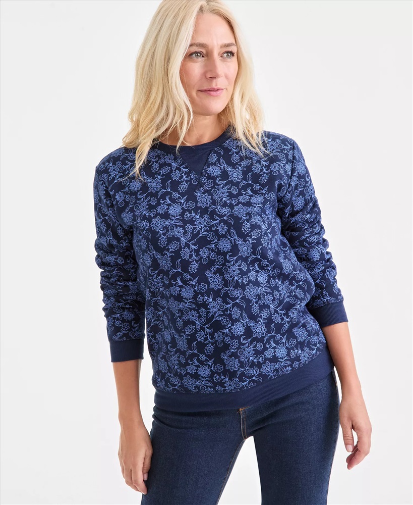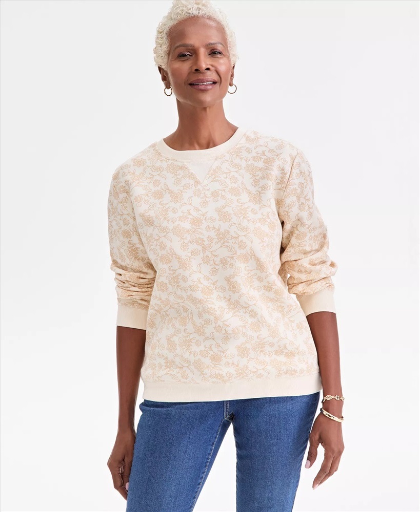 Style & Co Women's Printed Fleece Crewneck Sweatshirt, Macy's Exclusive
