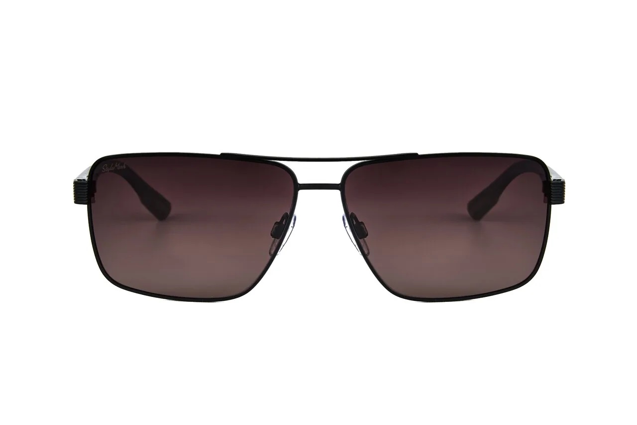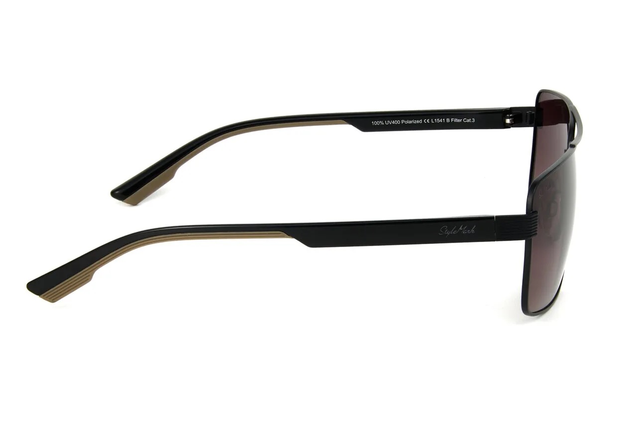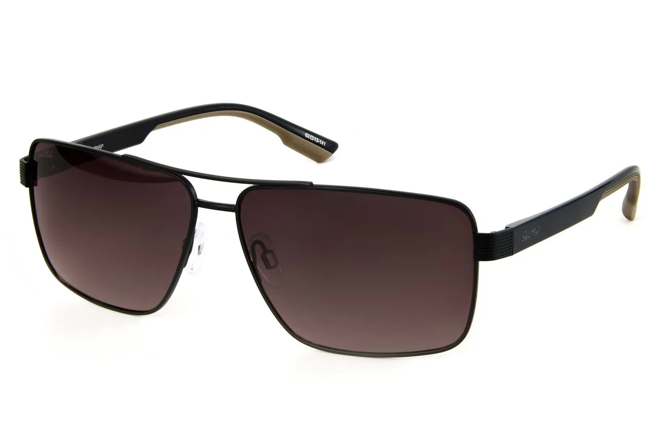 Пол: Мужские Форма оправы: Прямоугольная Материал оправы: Металл Цвет оправы: Чёрный Матовый Цвет заушника оправы: Чёрный Матовый / Бежевый Поляризация линзы: Есть Цвет линзы: Коричневый Градиент Защита от ультрафиолетовых лучей: UVA, UVB и UVC 100%