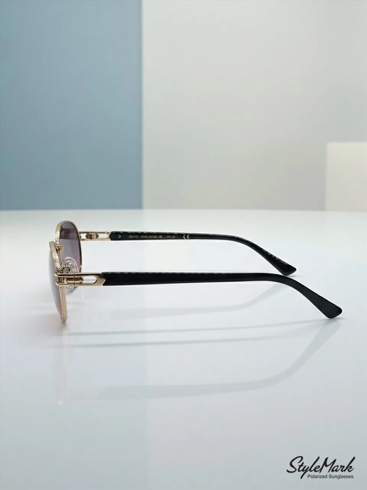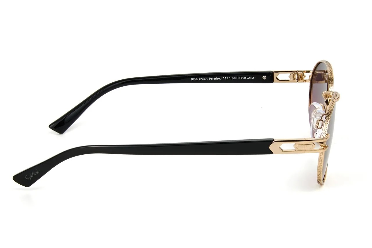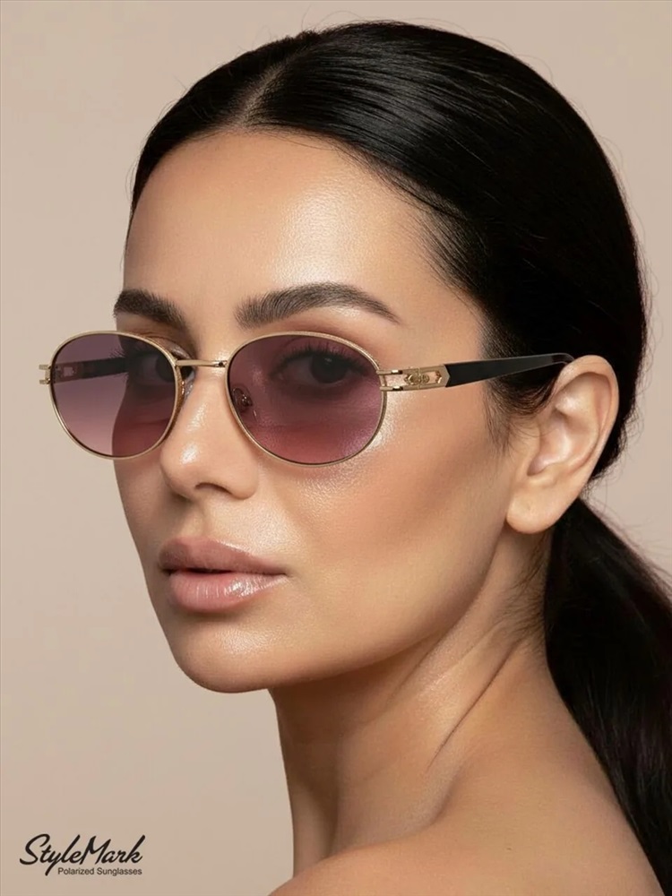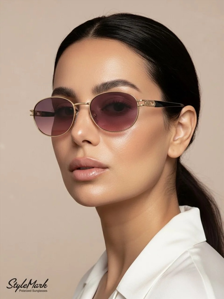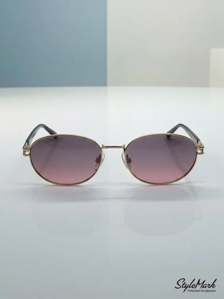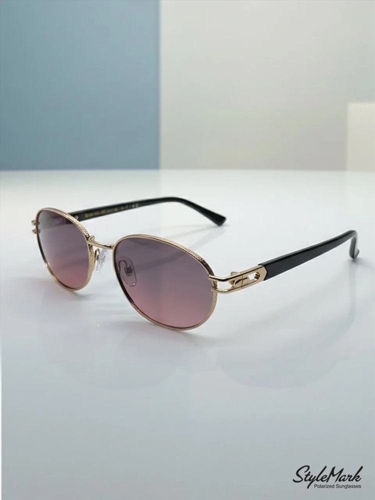 Пол: Женские Форма оправы: Овальная Материал оправы: Металл Цвет оправы: Светло-Золотистый Глянцевый Цвет заушника оправы: Светло-Золотистый Глянцевый / Чёрный Глянцевый Поляризация линзы: Есть Цвет линзы: Розово-Зелёный Градиент Защита от ультрафиолетовых лучей: UVA, UVB и UVC 100%