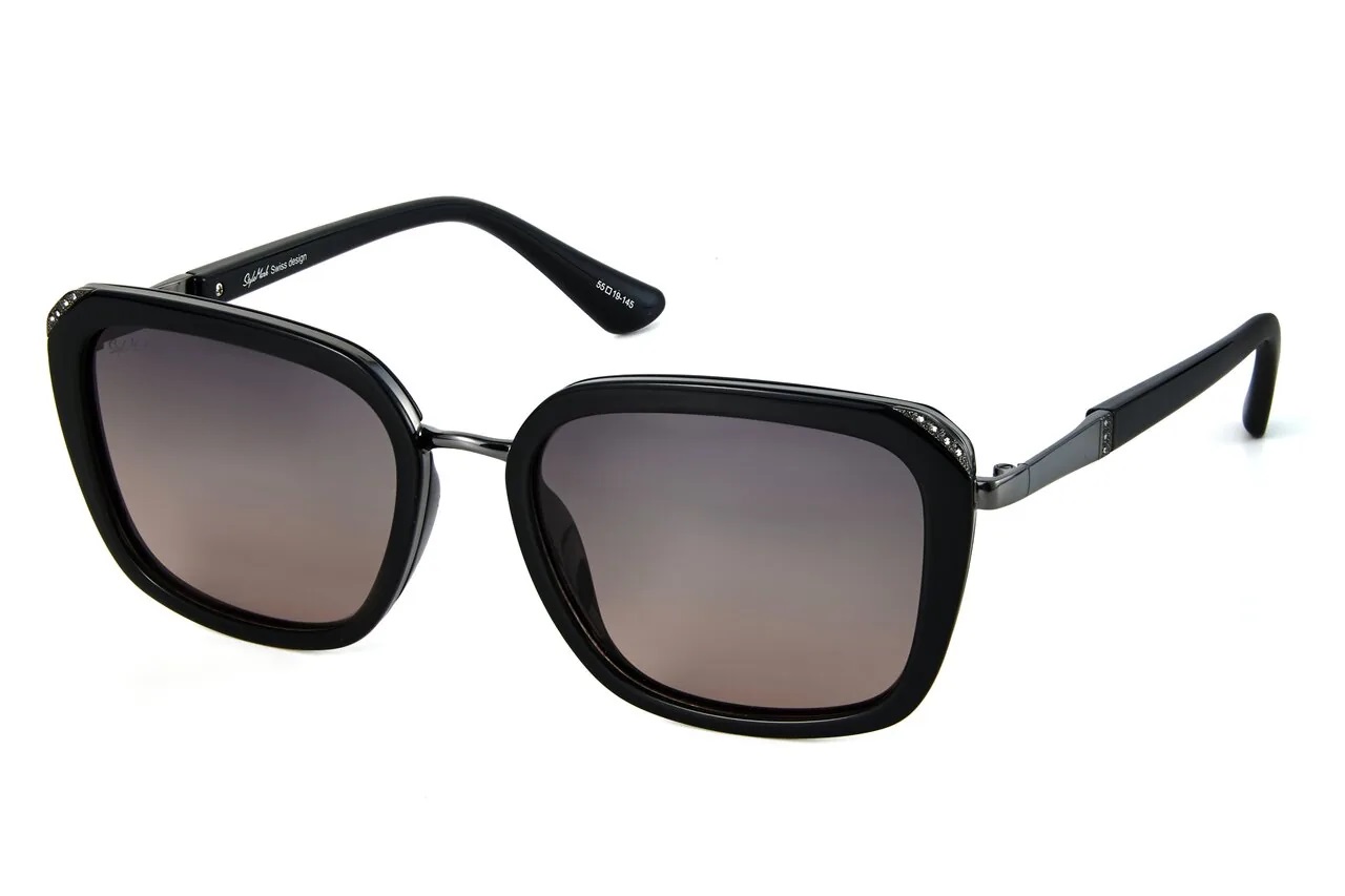 Пол: Женские Форма оправы: Квадратная Материал оправы: Поликарбонат / Металл Цвет оправы: Чёрный Глянцевый / Стальной Глянцевый Цвет заушника оправы: Чёрный Глянцевый / Стальной Глянцевый Поляризация линзы: Есть Цвет линзы: Серо-Зелёный Градиент Защита от ультрафиолетовых лучей: UVA, UVB и UVC 100%