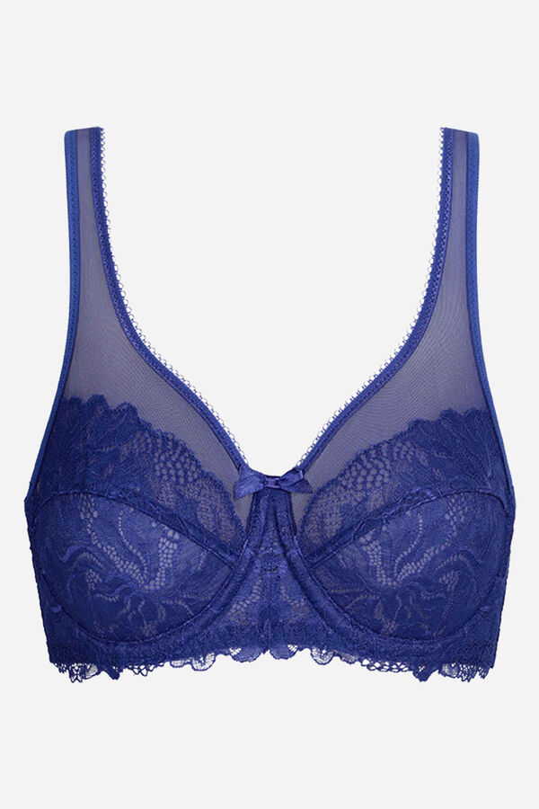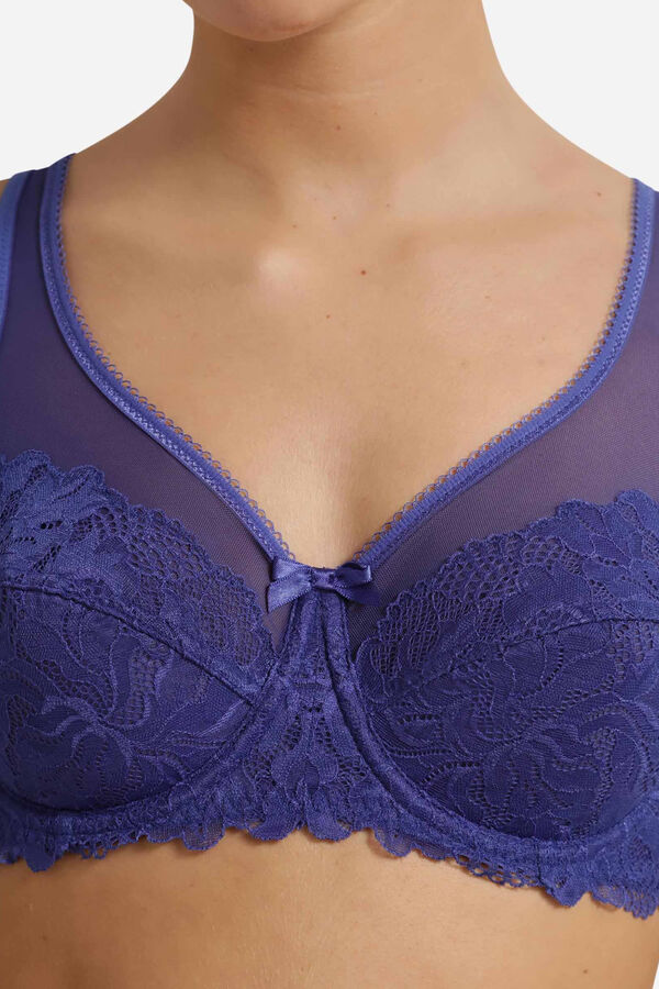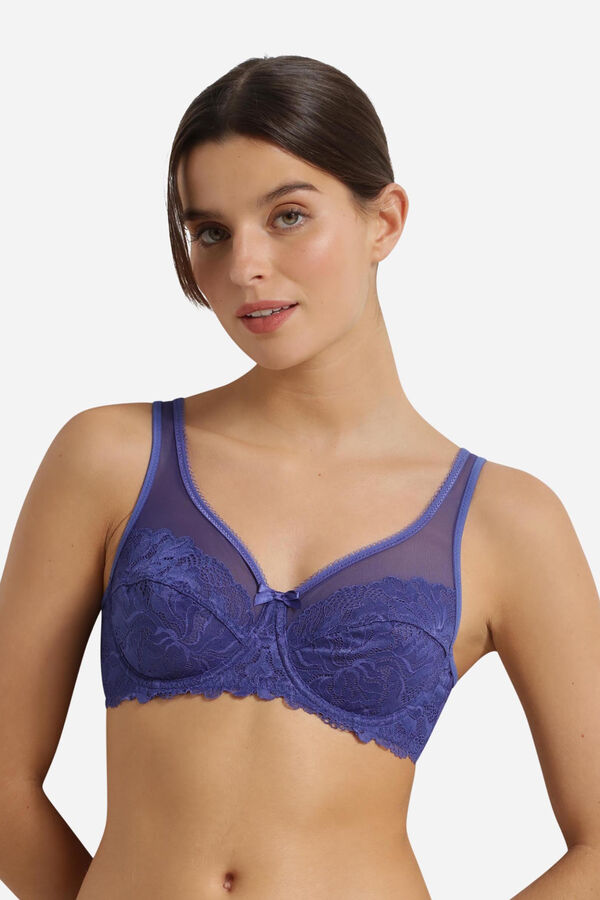 Sujetador de Máxima sujeción y comodidad diaria. Construcción para sujeción con corte y costura (tirantes anchos y separador, Espalda en « U », copas con zona de rejilla y aros para mayor sujeción). Un juego de transparencia entre el encaje de las copas y la espalda y el tul de los tirantes para un sujetador seductor y elegante. Look moderno e intemporal: mezcla de microfibra y rejilla (transparencia en el borde del escote).