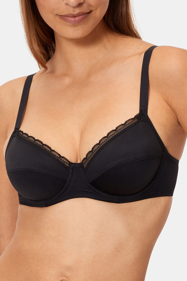 Sujetador de microfibra y encaje con una sujeción estructurada para asegurar la sujeción y la comodidad. Sujetador con aros de sujeción.