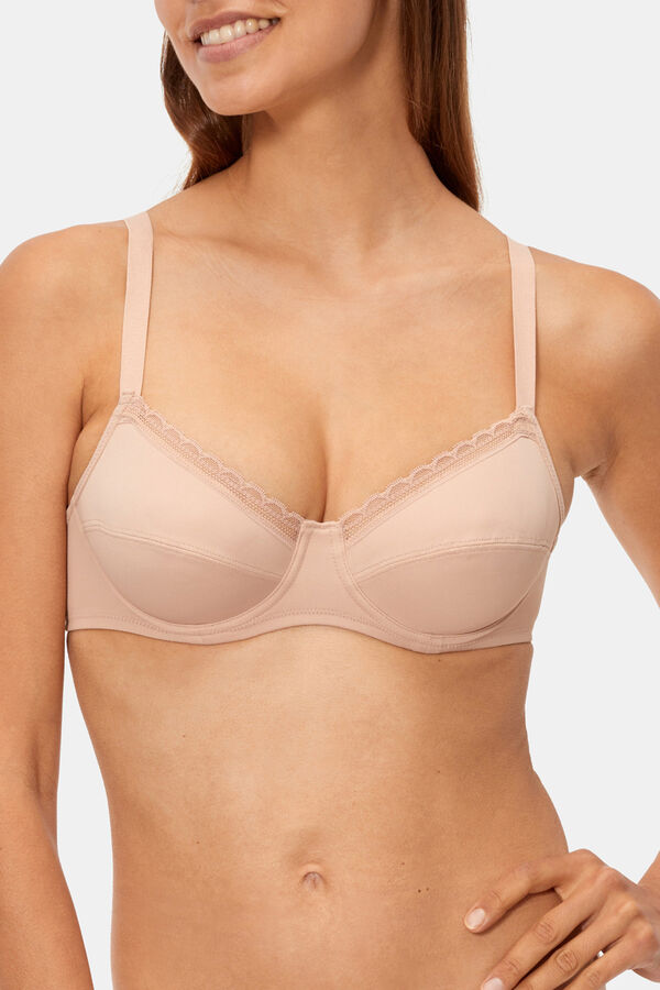 Sujetador de microfibra y encaje con una sujeción estructurada para asegurar la sujeción y la comodidad. Sujetador con aros de sujeción.