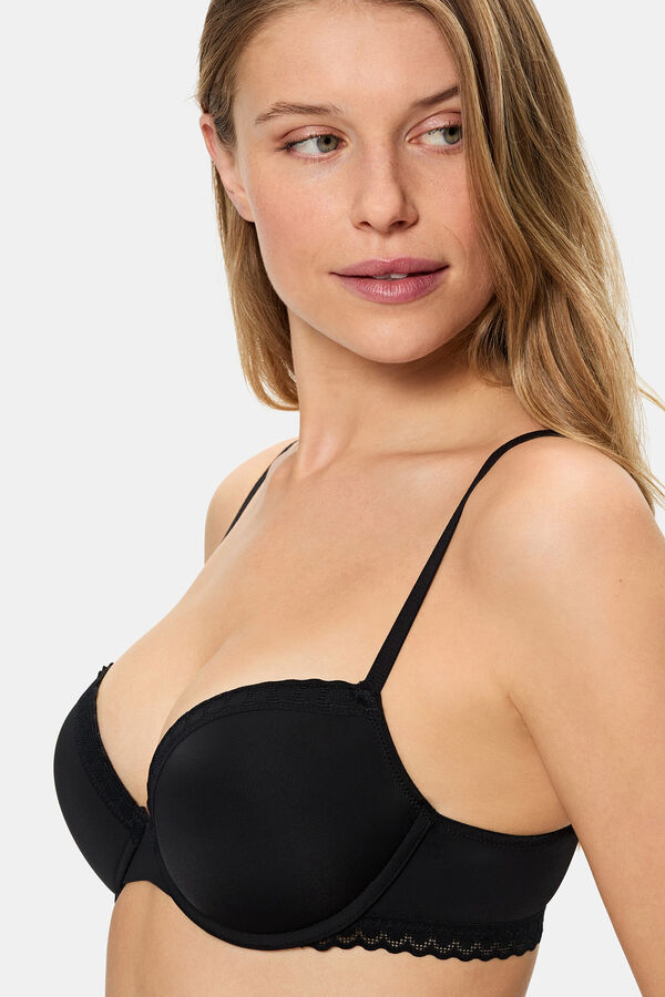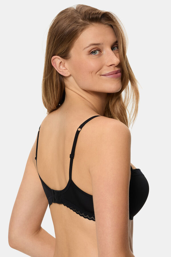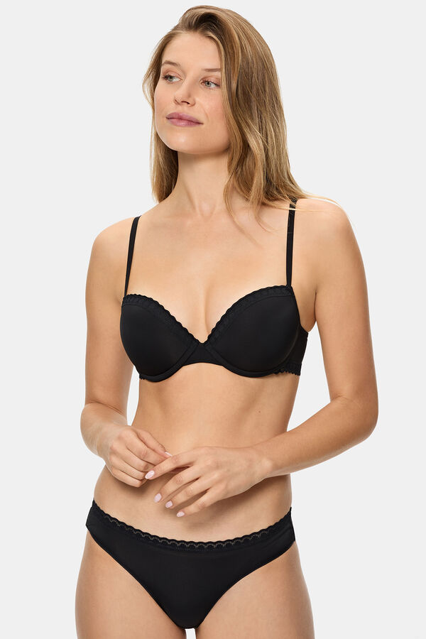 Sujetador con aros de suave microfibra DIM. Detalle de encaje en copas y espaldilla. Sujeción y comodidad.
