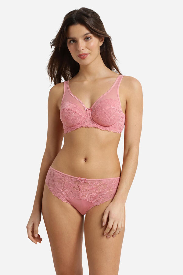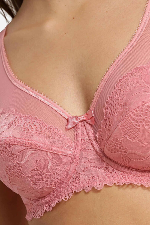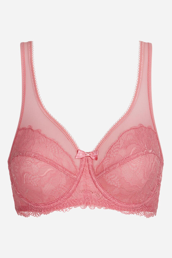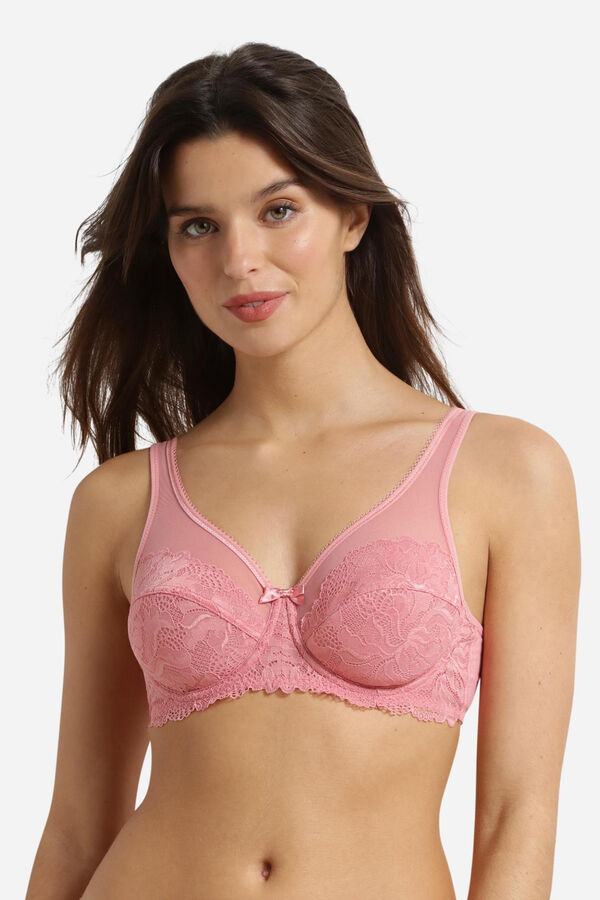 Sujetador de Máxima sujeción y comodidad diaria. Construcción para sujeción con corte y costura (tirantes anchos y separador, Espalda en « U », copas con zona de rejilla y aros para mayor sujeción). Un juego de transparencia entre el encaje de las copas y la espalda y el tul de los tirantes para un sujetador seductor y elegante. Look moderno e intemporal: mezcla de microfibra y rejilla (transparencia en el borde del escote).