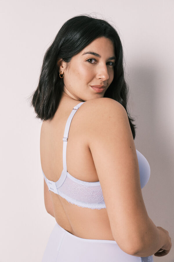 Sujetador REAL reductor: perfecto para pechos grandes con aro y sin relleno, confeccionado en tejido de microfibra y espalda de encaje. Con escote tipo halter y tirantes anchos para mayor comodidad.