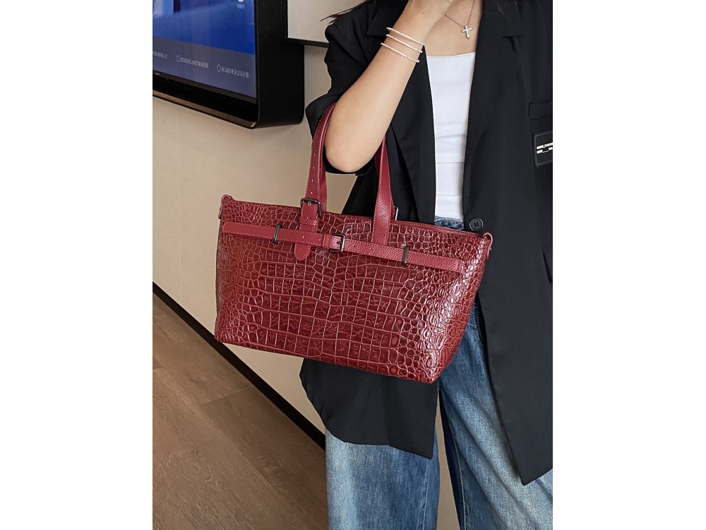 Сумка оснащена двумя регулируемыми ручками , а также длинным регулируемым ремнем, позволяющим носить сумку на плече или через плечо.