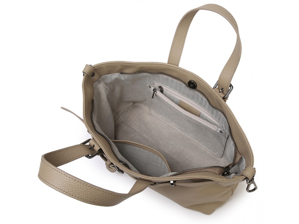 Одно основное отделение, внутри два надежных кармана на молнии для самых ценных предметов и один удобный открытый карман для легкого доступа к телефону, ключам и другим мелочам.