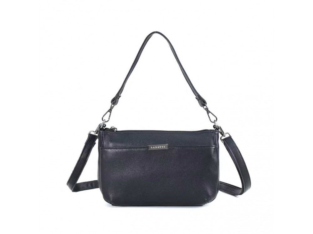 Три независимых отделения позволяют удобно организовать пространство: телефон, карты, ключи, документы — кошелёк не требуется. Два ремня в комплекте.