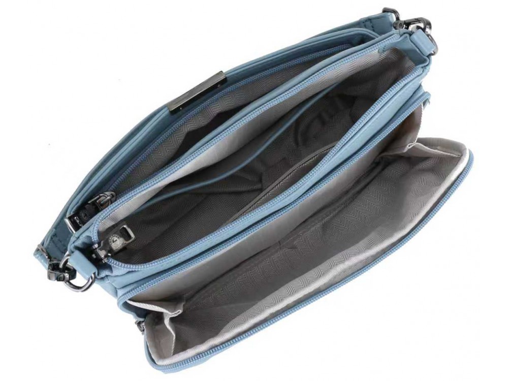 Три независимых отделения позволяют удобно организовать пространство: телефон, карты, ключи, документы — кошелёк не требуется. Два ремня в комплекте.