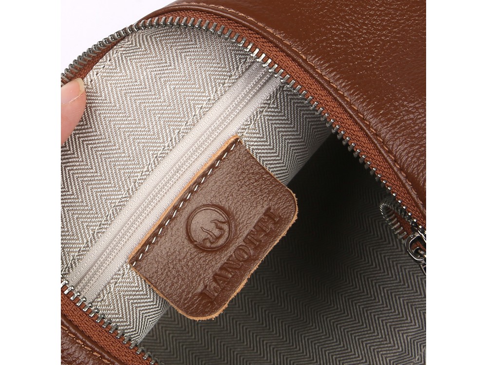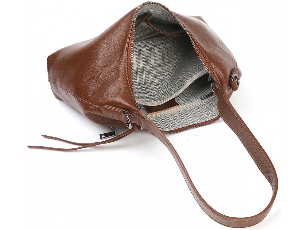 Внутри : Два вместительных основных отделения, разделенных удобным карманом на молнии, два внутренних аккуратных боковых кармашка для мелочей и надежный внутренний карман на молнии для сохранности ваших ценностей.
