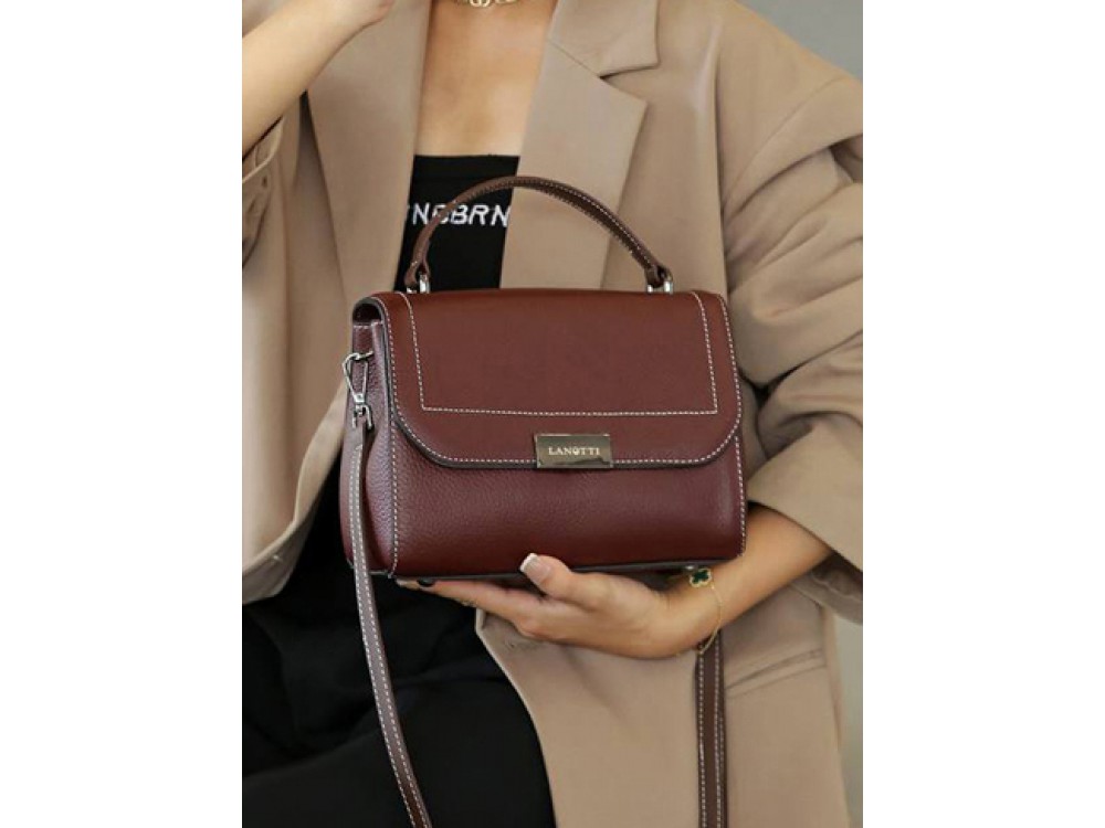 Сумка женская кожаная черная – это элегантно, стильно и удобно. Она позволит держать все важные и нужные вещи под рукой и в безопасности. Вашему вниманию представлена сумка в модном дизайне и по привлекательной цене. Сумка кросс-боди с контрастной коричневой ручкой является трендом осени 2023 года. Именно поэтому она обязана быть в гардеробе каждой модницы. Стильный деловой аксессуар придаст вашему повседневному или торжественному образу особый шарм и изысканность. Сумочка легкая, компактная, но при этом вместительная. Все самое необходимое поместится и в этой модели. Представленная кросс-боди имеет одно просторное отделение и два кармана внутри – открытый и на молнии. Такая женская сумочка из натуральной кожи пригодится на прогулке, в путешествии, для выхода в кино или ресторан. Она так же гармонично смотрится с вечерним платьем, строгим костюмом или молодежным луком. Дизайнерские стильные модели абсолютно все выглядят солидно и респектабельно. Деловой портфель пошит аккуратно и просто, не имеет изъянов. Cross-body изготовлена из мягкой, но прочной натуральной кожи. Благодаря этому она прослужит вам не один сезон и всегда будет выглядеть как новая. Модель не боится дождя, снега, палящего солнца. Берите ее с собой в любую погоду! Классическая, базовая, элегантная кросс-боди бренда Lanotti представлена в черном, зеленом и цвете слоновая кость. Стильные тоут выполнена из натуральной кожи, которая хорошо держит форму. Прекрасно подходит для повседневной носки, в офис, школу, на свадьбу или свидание. Бренд Lannotti следит за новинками главных модных домов Европы и Азии , чтобы наши покупатели имели возможность приобрести экземпляры не уступающие по стилю и качеству Hermes Furla Fendi Dr. Koffer Christian Dior Louis Vuitton Guess Zanellato Michael Kors Cromia Gucci Prada Bottega Veneta Marc Jacobs Chanel.Если Вы цените качество других российских производителей то бренд Lanotti Вас порадует.