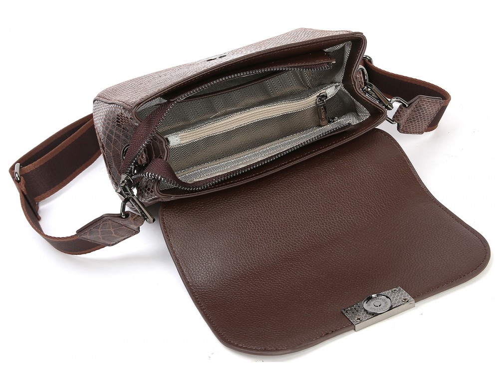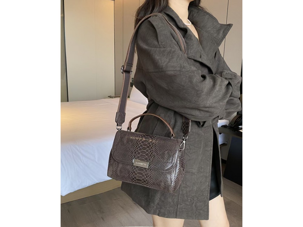 Сумка женская кожаная черная – это элегантно, стильно и удобно. Она позволит держать все важные и нужные вещи под рукой и в безопасности. Вашему вниманию представлена сумка в модном дизайне и по привлекательной цене. Сумка кросс-боди с контрастной коричневой ручкой является трендом осени 2023 года. Именно поэтому она обязана быть в гардеробе каждой модницы. Стильный деловой аксессуар придаст вашему повседневному или торжественному образу особый шарм и изысканность. Сумочка легкая, компактная, но при этом вместительная. Все самое необходимое поместится и в этой модели. Представленная кросс-боди имеет одно просторное отделение и два кармана внутри – открытый и на молнии. Такая женская сумочка из натуральной кожи пригодится на прогулке, в путешествии, для выхода в кино или ресторан. Она так же гармонично смотрится с вечерним платьем, строгим костюмом или молодежным луком. Дизайнерские стильные модели абсолютно все выглядят солидно и респектабельно. Деловой портфель пошит аккуратно и просто, не имеет изъянов. Cross-body изготовлена из мягкой, но прочной натуральной кожи. Благодаря этому она прослужит вам не один сезон и всегда будет выглядеть как новая. Модель не боится дождя, снега, палящего солнца. Берите ее с собой в любую погоду! Классическая, базовая, элегантная кросс-боди бренда Lanotti представлена в черном, зеленом и цвете слоновая кость. Стильные тоут выполнена из натуральной кожи, которая хорошо держит форму. Прекрасно подходит для повседневной носки, в офис, школу, на свадьбу или свидание. Бренд Lannotti следит за новинками главных модных домов Европы и Азии , чтобы наши покупатели имели возможность приобрести экземпляры не уступающие по стилю и качеству Hermes Furla Fendi Dr. Koffer Christian Dior Louis Vuitton Guess Zanellato Michael Kors Cromia Gucci Prada Bottega Veneta Marc Jacobs Chanel.Если Вы цените качество других российских производителей то бренд Lanotti Вас порадует.