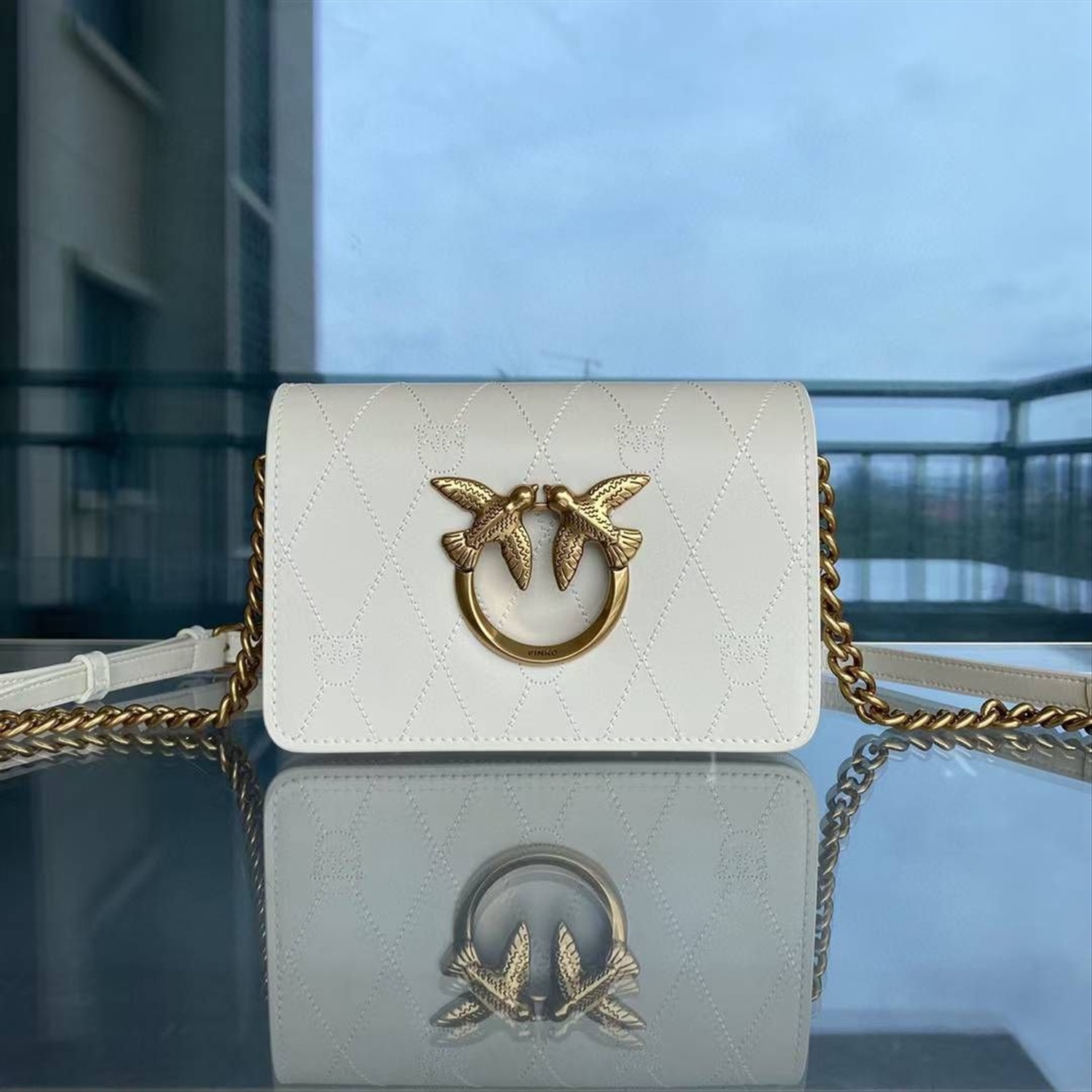 сумка PINKO, классическая сумка через плечо через плечо с двойной птицей и ромбом, регулируемая цепочка, размер: 19*14*5