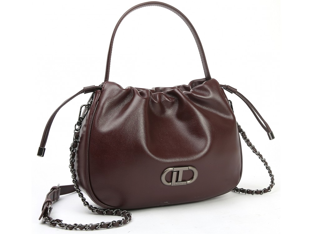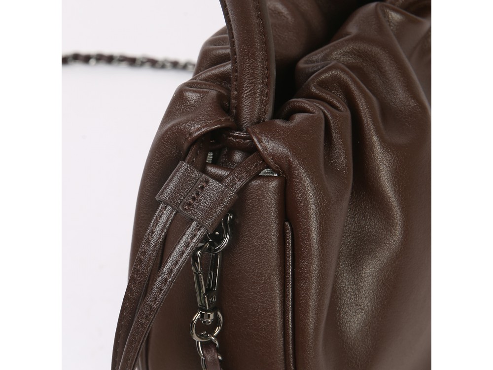 Размер: 26*18*9 Описание: Два основных отделения, разделенные карманом на молнии Внутри: карман на молнии для безопасности и открытый карман для аксессуаров. Магнитное закрытие и регулируемые боковые шнурки для трансформации размера. Идеальный баланс комфорта и моды. В комплекте регулируемый ремень-цепочка.