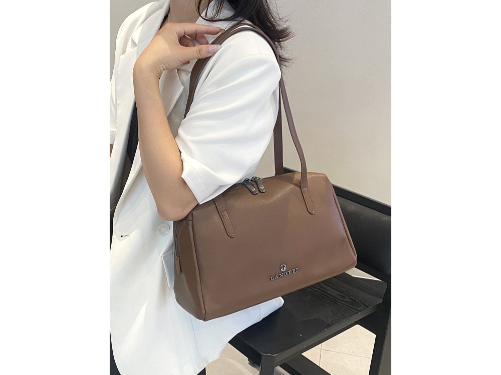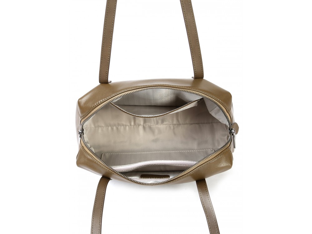 Описание: стильная и вместительная сумка из натуральной кожи. Одно просторное отделение и два внутренних кармана, один из которых на молнии.