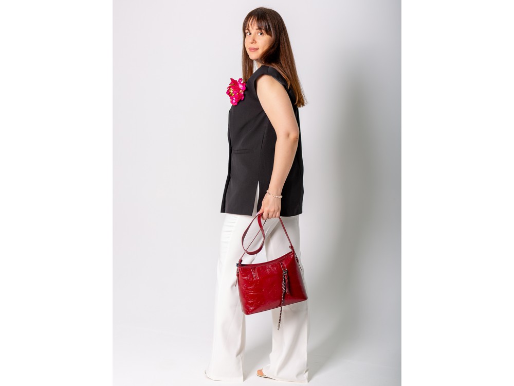 Сумка шоппер с регуриемой ручкой. . Внутри: два отделения, между ними перегородка в виде кармана на молнии. Дополнительно два кармана для аксессуаров, один из которых застегивается на молнию.