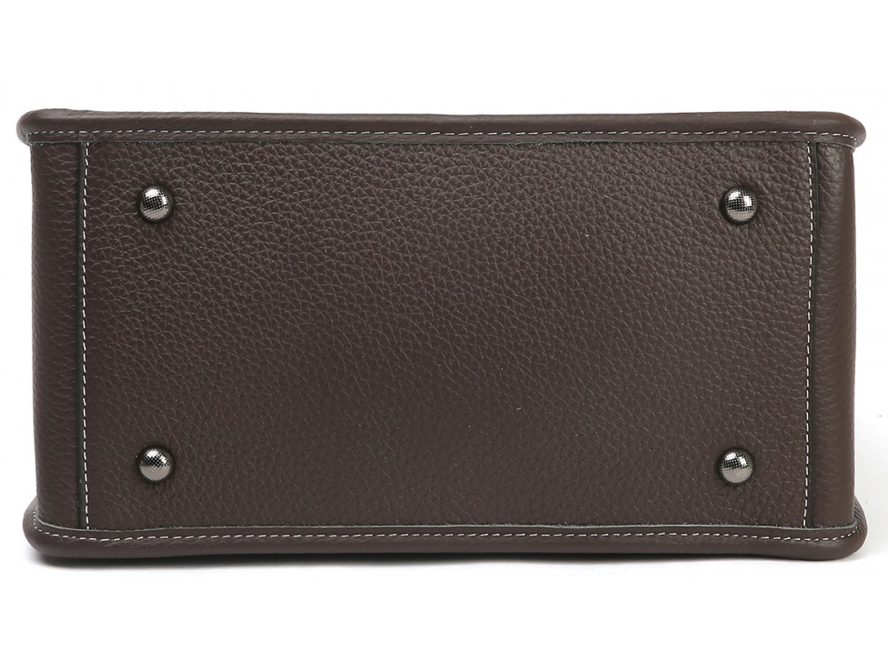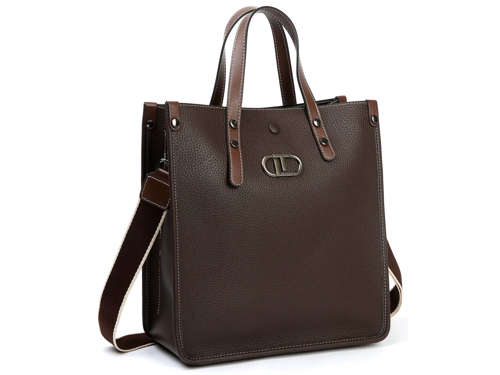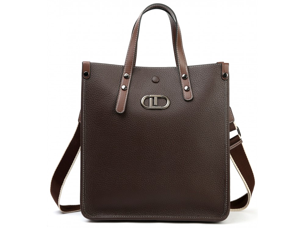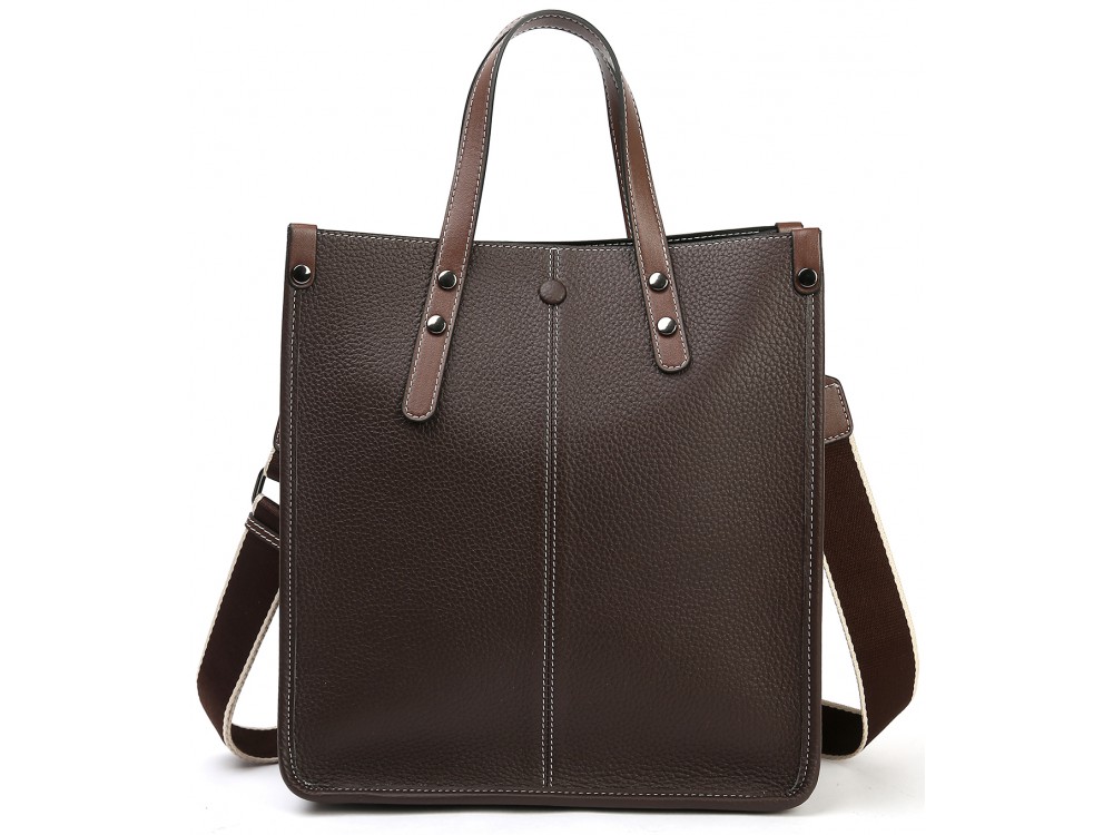 Две короткие ручки. Текстильный ремень на плечо + длинный кожаный ремень с возможностью регулировки. Три основаных отделения. Одно застегивается на молнию + внутри карман для телефона, дополнительный карман для аксессуаров на молнии. Два других отделения застегиваются на магнитную клепку.