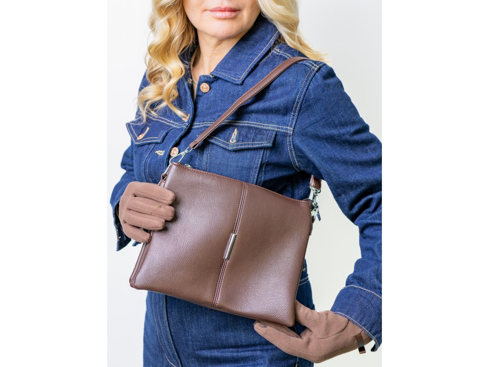 Описание: Сумка из эко-кожи с тремя отделениями на молниях идеально сочетает стиль и практичность. Сзади дополнительный карман на молнии для быстрого доступа к самым нужным мелочам.