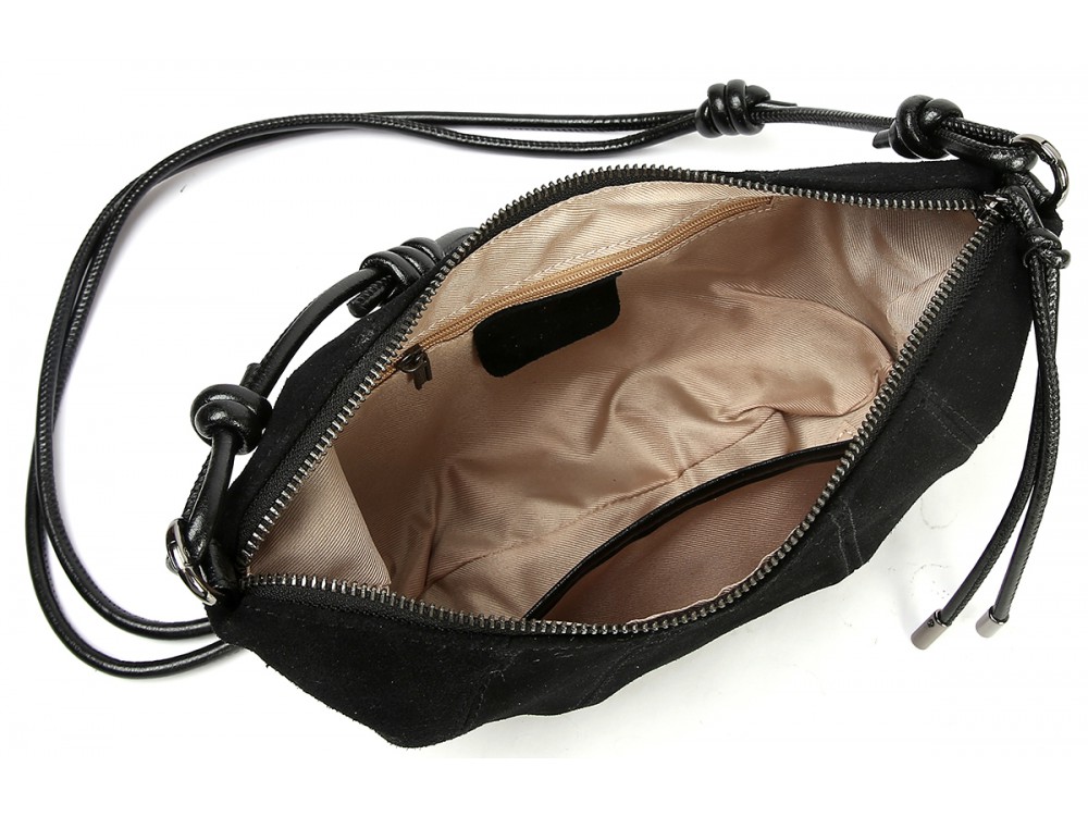 Данная модель имеет регулируемый ремень из натуральной кожи. Внутри одно основное отделение с карманом для мелочей на молнии.