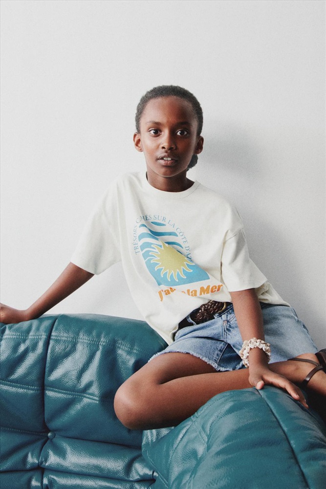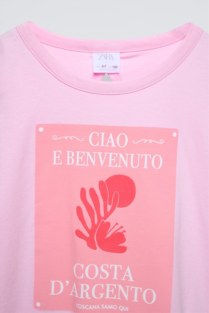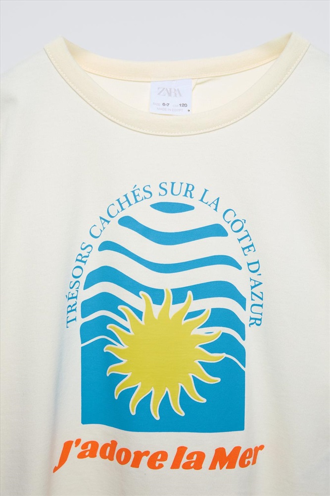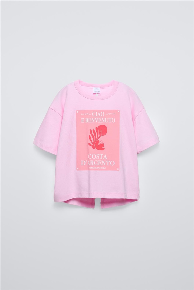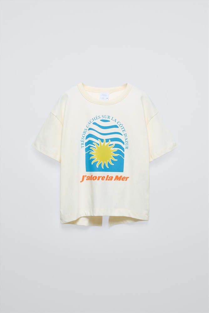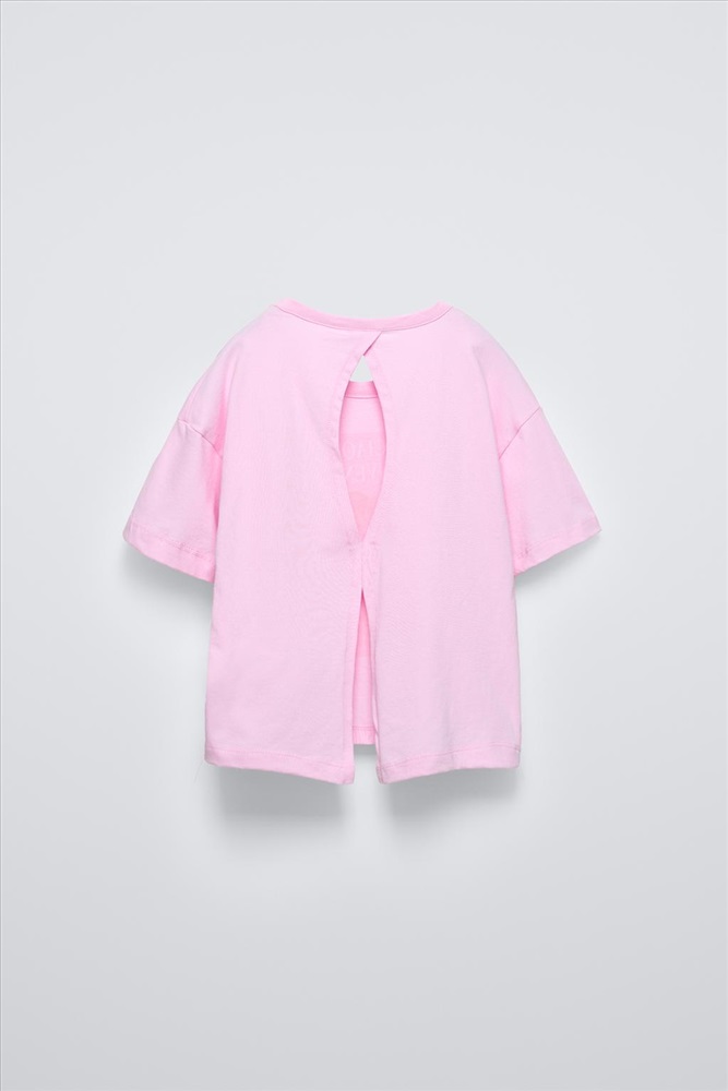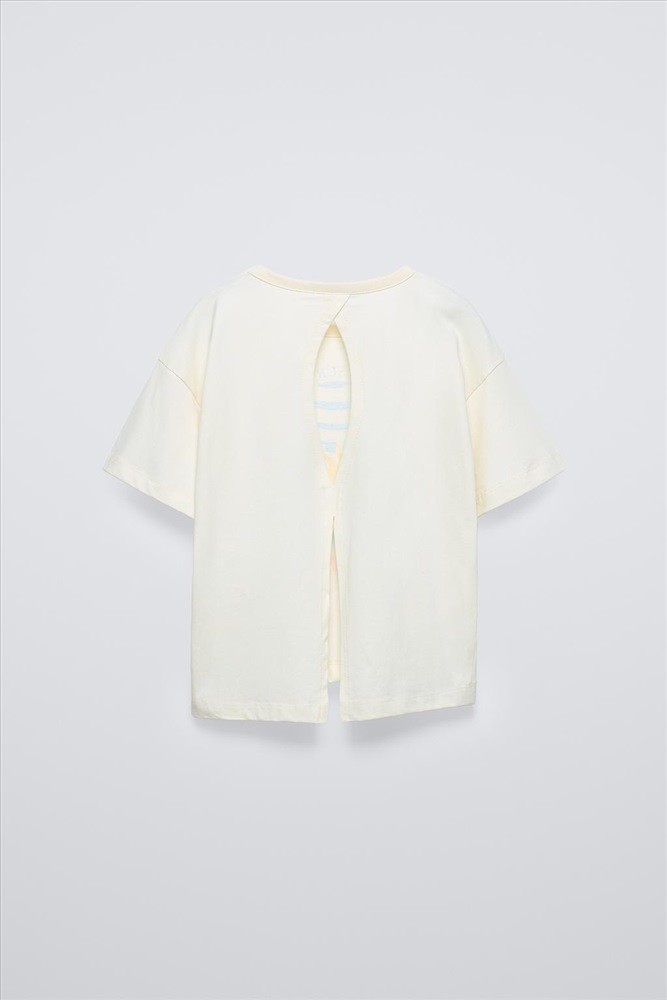 T-shirt with a round neck and short sleeves. Front print. Cut-out detail at the back.