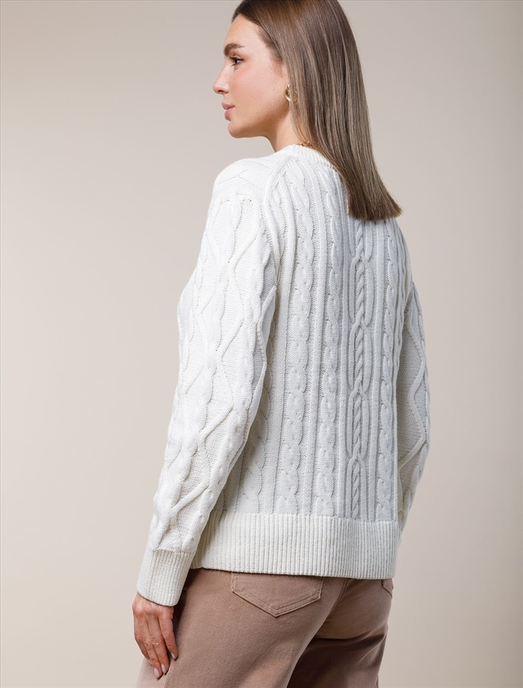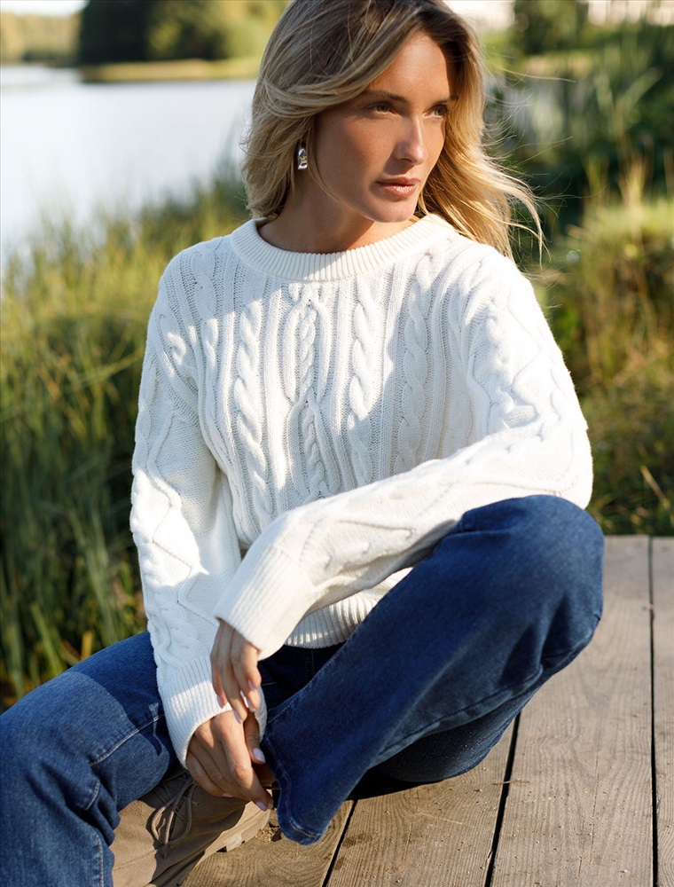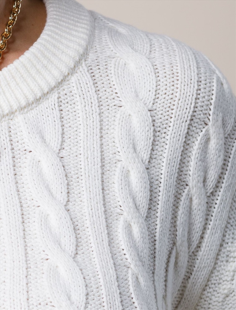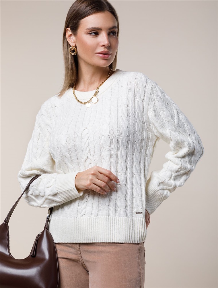 Параметры модели на первом фото: Рост 172, бюст 88, талия 64, бедра 88 Свитер выполнен из мягкой хлопковой пряжи фактурной вязки с добавлением акрила. Модель связана изнаночной петлей, в сочетании с которой узор косы и высокие рибаны поддерживают ирландский стиль, который всегда в тренде. Круглый вырез. Свободная посадка. Комментарии к товару