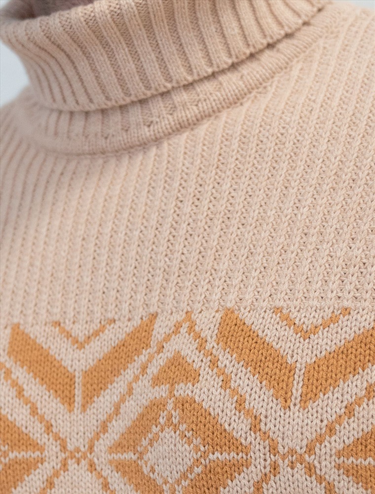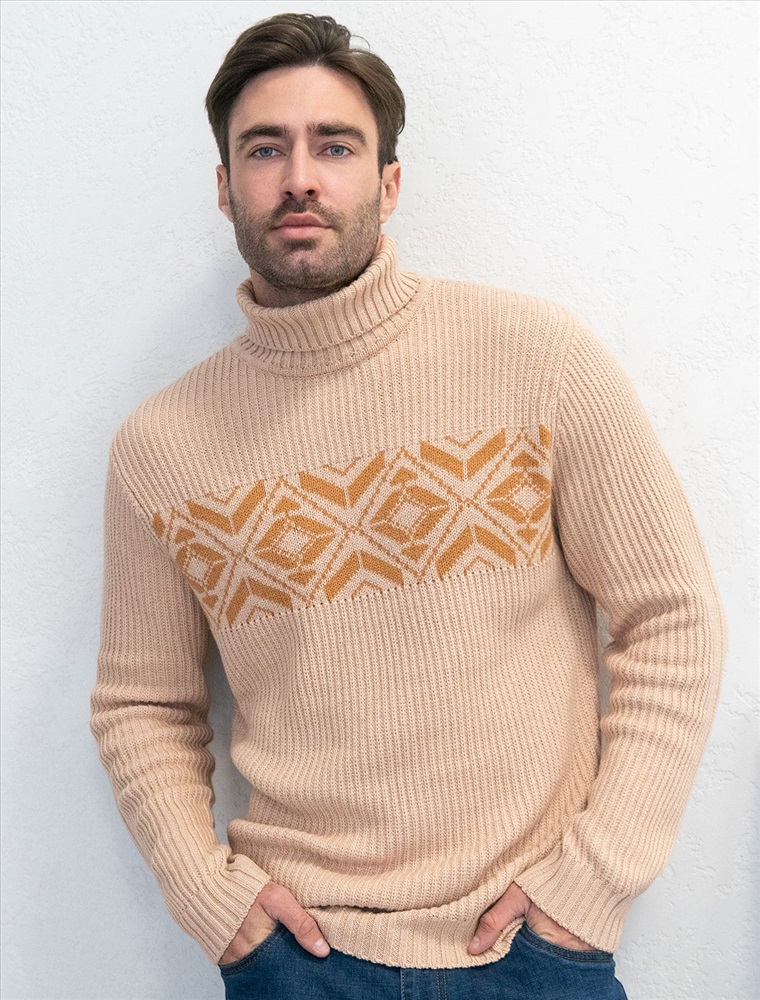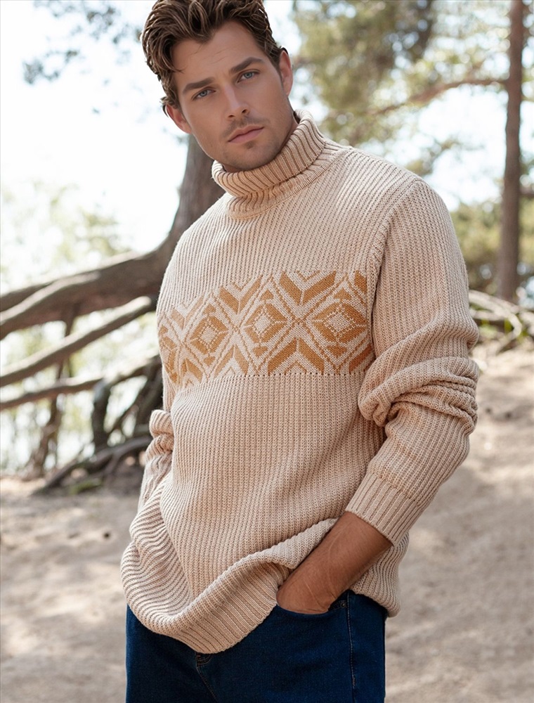 Параметры модели на первом фото: Рост 187, бюст 102, талия 87, бедра 103 Свитер крупной фактурной вязки выполнен из мягкой хлопковой пряжи с акрилом. Теплая фактура изделия подчеркнута скандинавским узором. Длинный ворот защитит от ветреной погоды и поможет собрать, уютный комплект в расслабленном стиле в осенне-зимний период. Не препятствует циркуляции воздуха, но при этом хорошо сохраняет тепло и не колется, поэтому свитер комфортно носить даже на голое тело. Модель дополнена фирменным логотипом бренда.