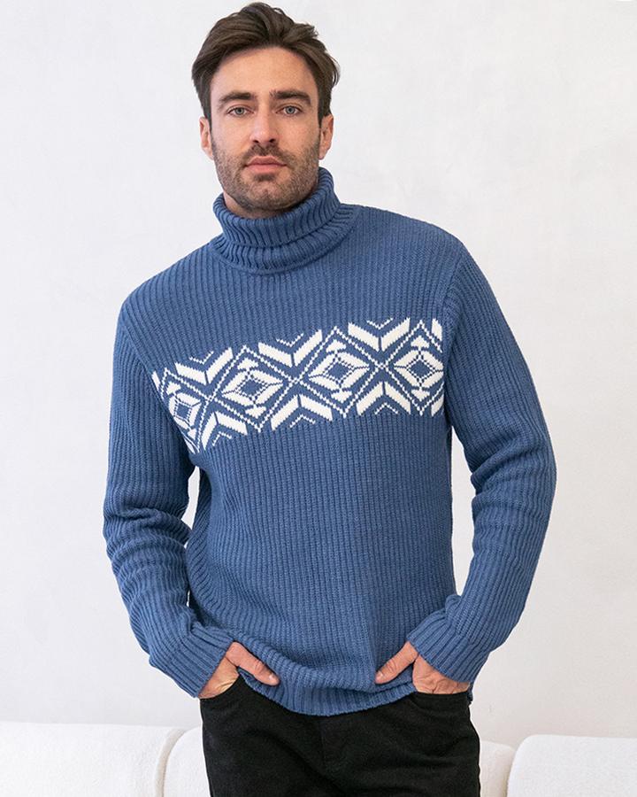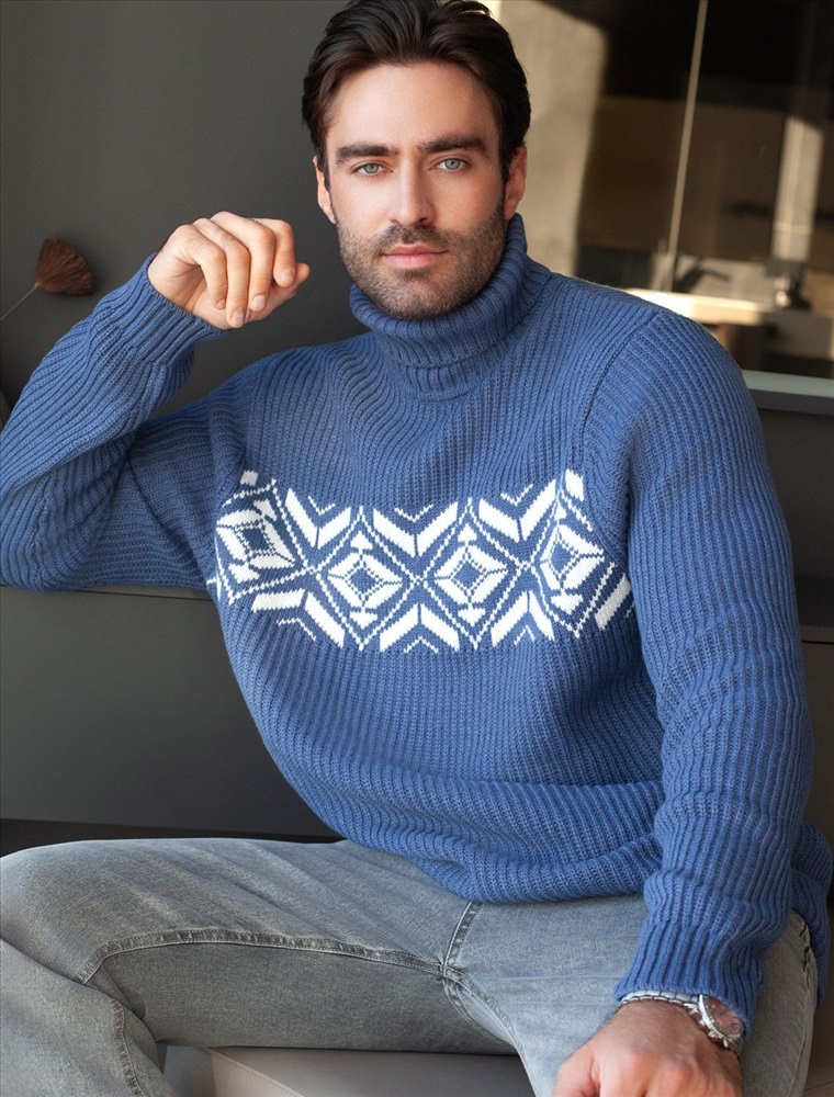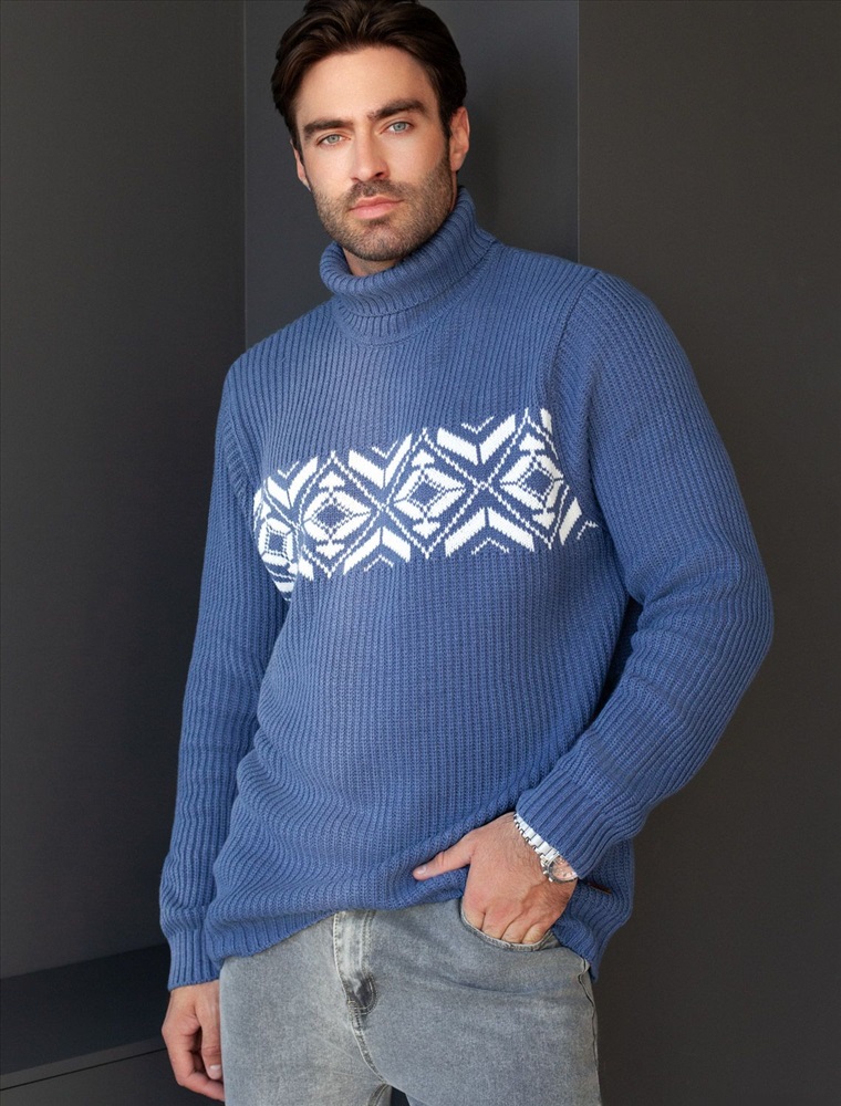 Параметры модели на первом фото: Рост 187, бюст 102, талия 87, бедра 103 Свитер крупной фактурной вязки выполнен из мягкой хлопковой пряжи с акрилом. Теплая фактура изделия подчеркнута скандинавским узором. Длинный ворот защитит от ветреной погоды и поможет собрать, уютный комплект в расслабленном стиле в осенне-зимний период. Не препятствует циркуляции воздуха, но при этом хорошо сохраняет тепло и не колется, поэтому свитер комфортно носить даже на голое тело. Модель дополнена фирменным логотипом бренда.