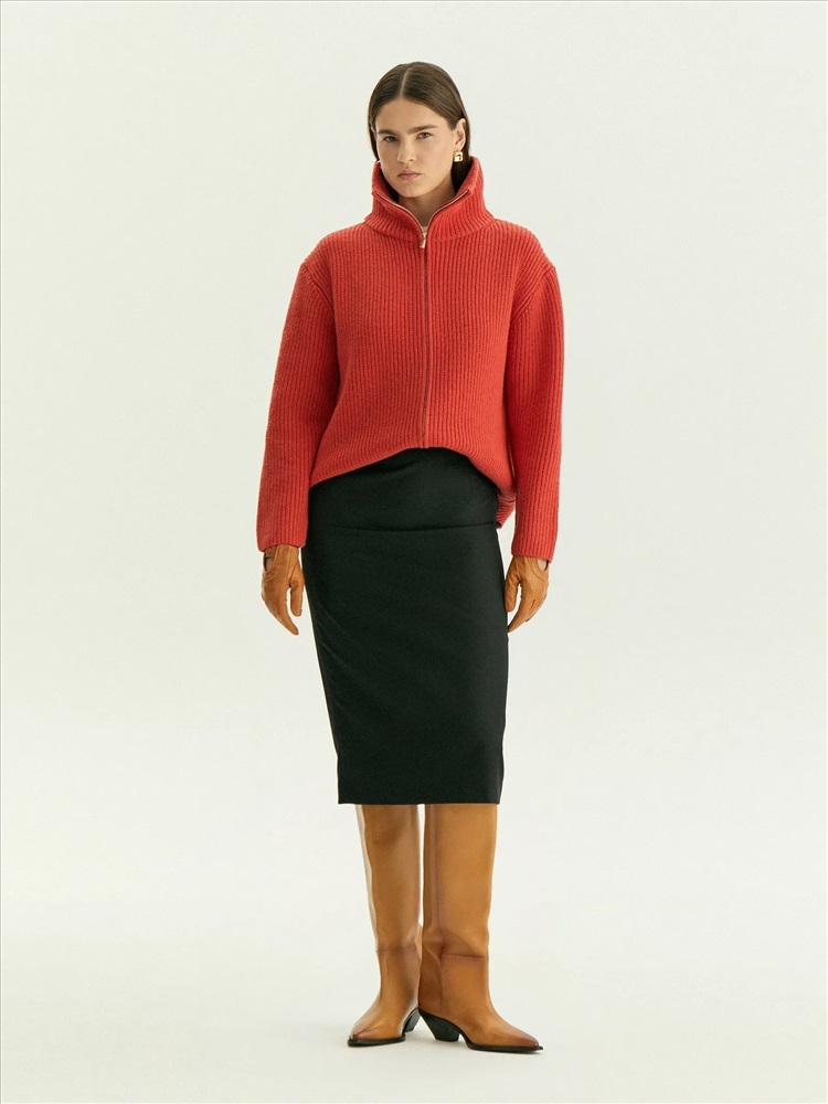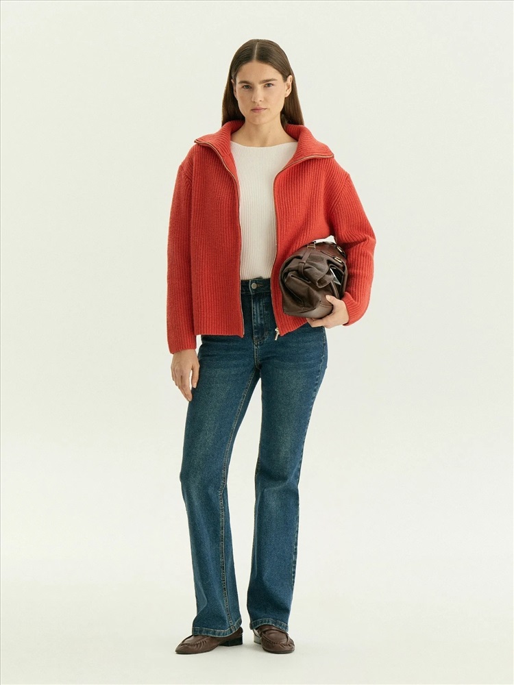 Джемпер на молнии — удобный утепляющий слой для повседневных образов. Горловину можно расстегнуть, разложив по плечам на манер воротника "апаш".