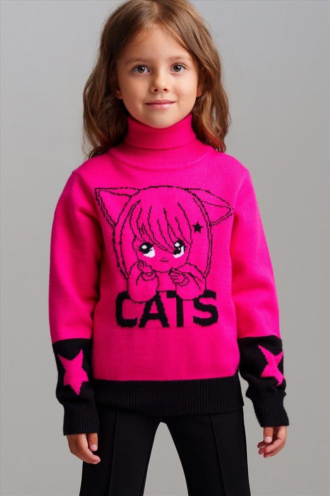 ID товара: 1051010 Состав: 50% Вискоза, 50% Нейлон Сезон: Осень/Зима Длина: Средняя Фасон: Прямой Рукав: длинные Вырез горловины: Воротник-стойка Рисунок: Надпись Декоративные элементы: Принт Основная ткань: Вискоза Стиль: повседневный Страна бренда: Германия Страна производства: Китай Свитер детский для девочки. Свитер из вязаного трикотажа с добавленим вискозы. Модный свитер жаккардовой вязки с высоким содержанием вискозы. Вискоза хорошо поглощает влагу, отлично пропускают воздух. Изделия приятны к телу, и не вызывают раздражения. Модель из капсульной коллекции CATS DREAM. Соберите полный образ в едином стиле! Комментарии к товару