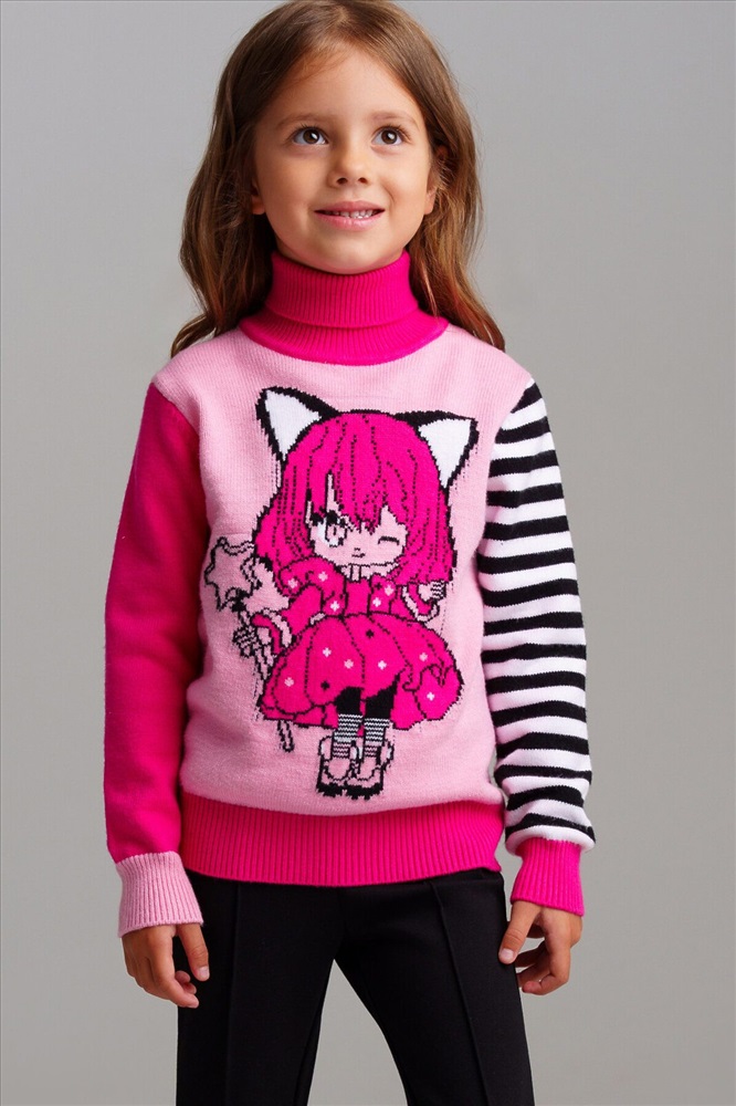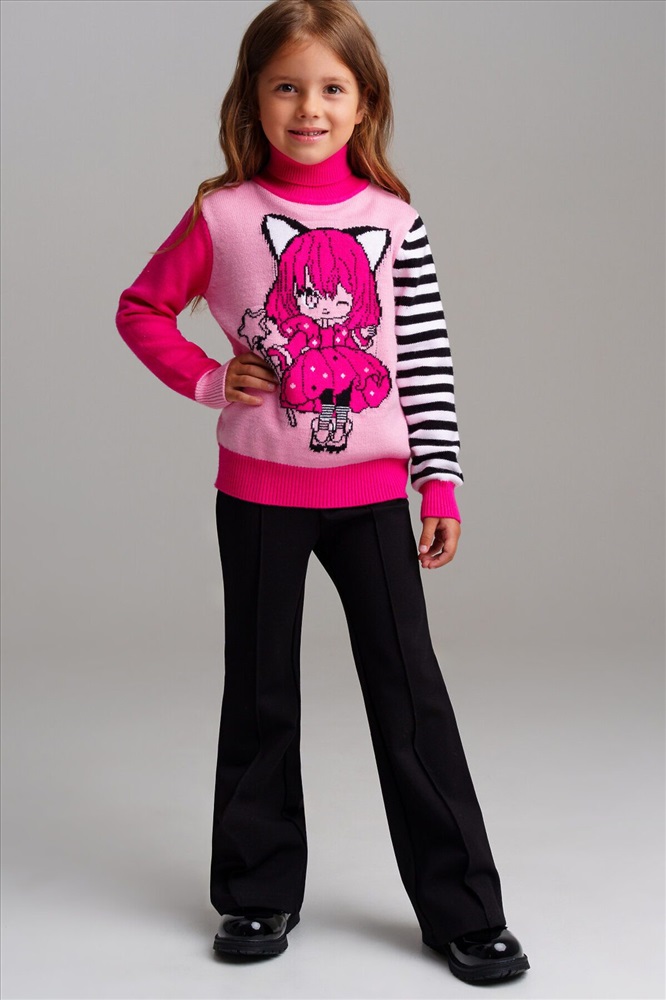 Страна производства: Китай Свитер детский для девочки. Свитер из вязаного трикотажа с добавленим вискозы. Модный свитер жаккардовой вязки с высоким содержанием вискозы. Вискоза хорошо поглощает влагу, отлично пропускают воздух. Изделия приятны к телу, и не вызывают раздражения. Модель из капсульной коллекции CATS DREAM. Соберите полный образ в едином стиле!
