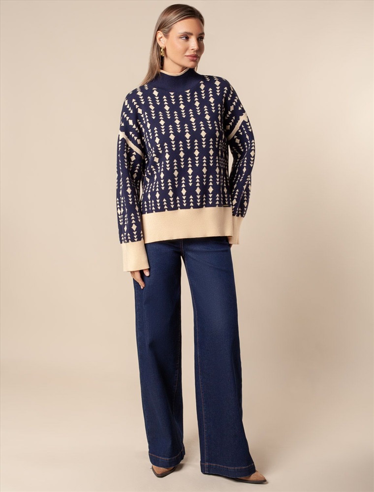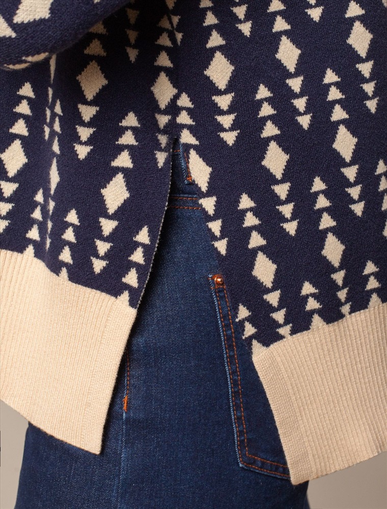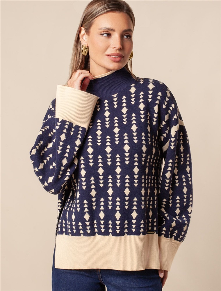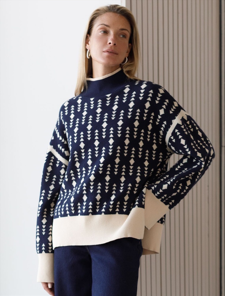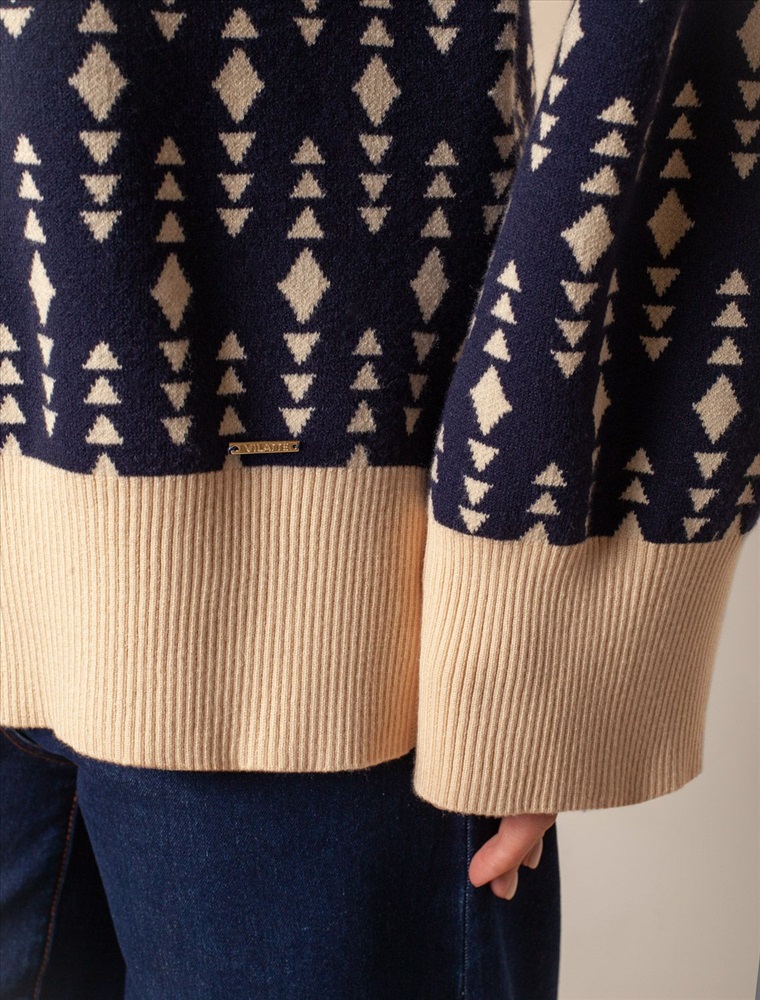 Плотность: 12 GG Параметры модели на первом фото: Рост 170, бюст 89, талия 63, бедра 92 Свитер жаккардовой вязки выполнен из нежной пряжи на основе вискозы с добавлением кашемира. Свободная модель со спущенным плечом дополнена боковыми разрезами, что делает образ еще более расслабленным. Совет стилиста: такой джемпер может стать ключевым акцентом в сдержанном комплекте. Выбирайте однотонные низы в тон широкой рибаны или на контрасте. Комментарии к товару