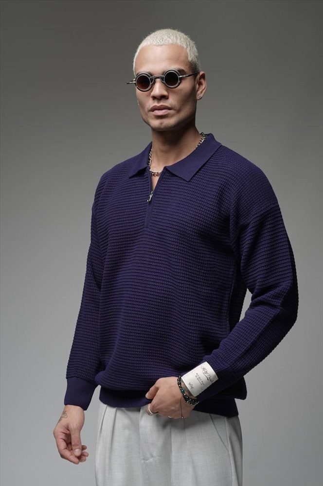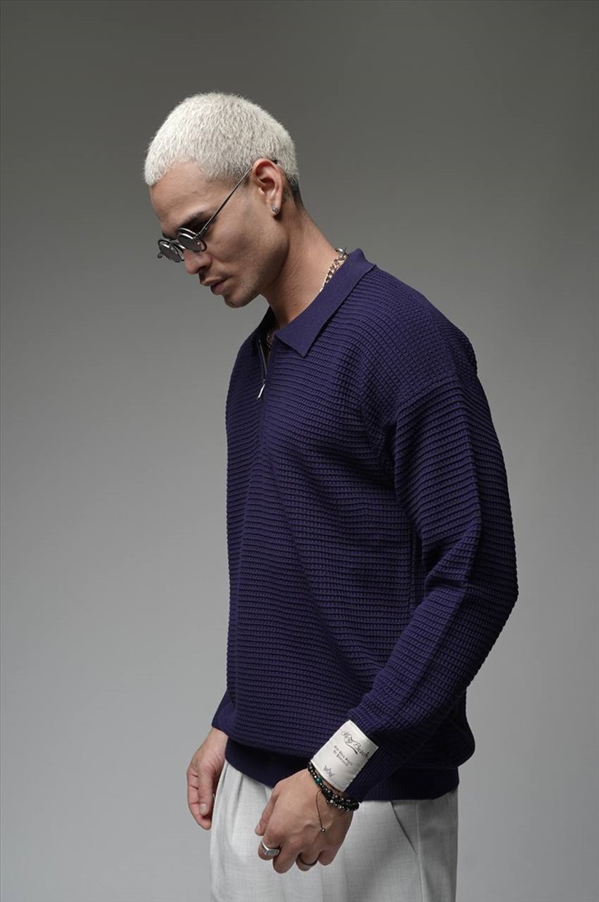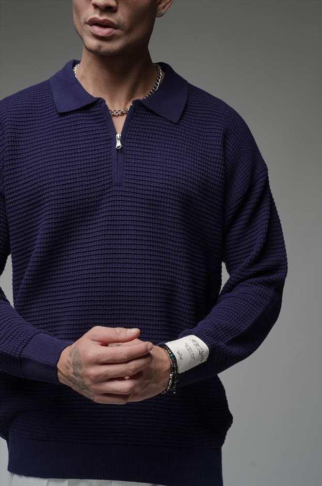 Свитер с замком синий