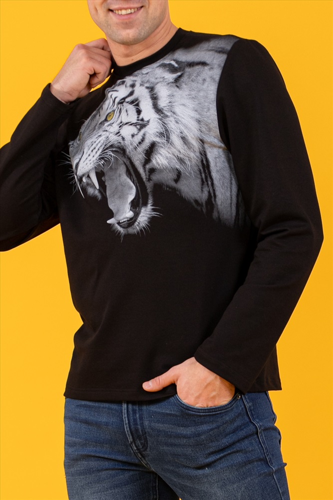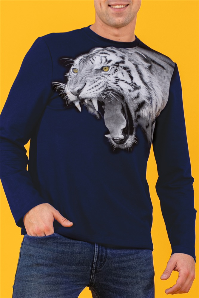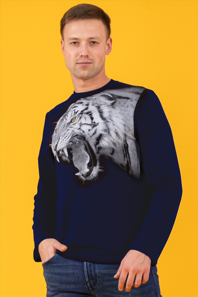 Состав: 75% хлопок, 25% полиэстер Модель: Свитшот 57039 Тип товара: свитшот Материал: футер 2-х нитка | футер 2-х нитка Бренд: Amichevole Berchelli Длина: средняя длина Карман: без карманов Отделка: с печатью Рисунок: хищники | крупный принт Рукав: длинный рукав Сезонность: лето | осень | весна | зима Силуэт: прямой Стиль: повседневный | спортивный Воротник: без воротника Застежка: без застежки Футболка с длинным рукавом с принтом синего и черного цветов Таблица размеров и веса