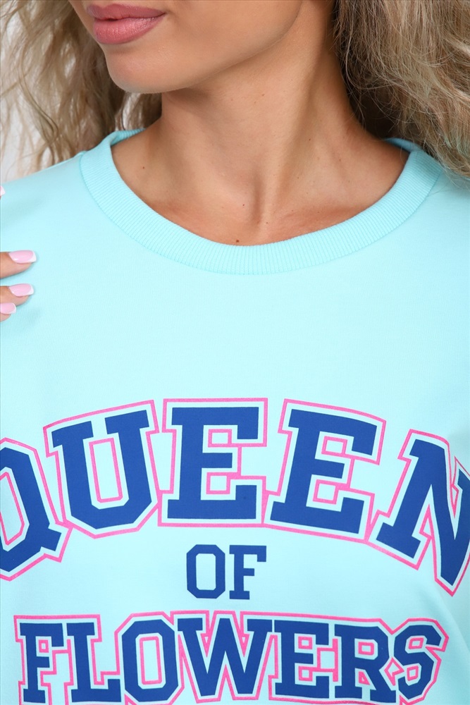 Застежка: без застежки Свитшот с длинными рукавами на манжентах и на поясе со стильным принтом. Актуальные расцветки выделяют эту вещь. Данный трикотаж хорошо переносит стирки, долго сохраняет презентабельный вид.