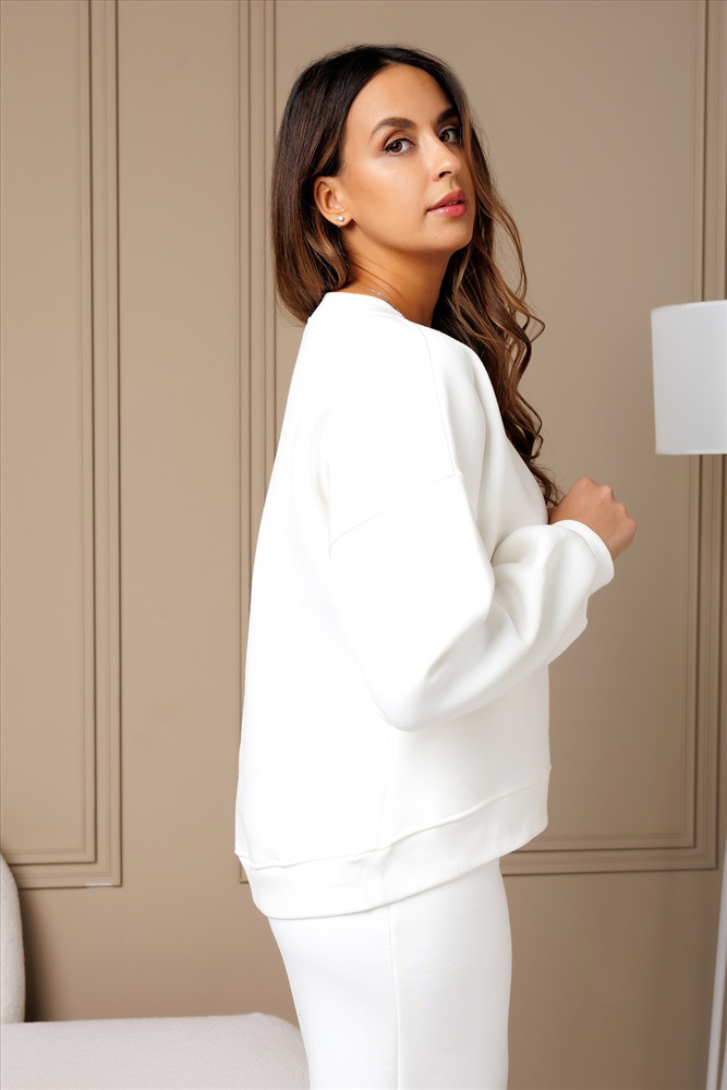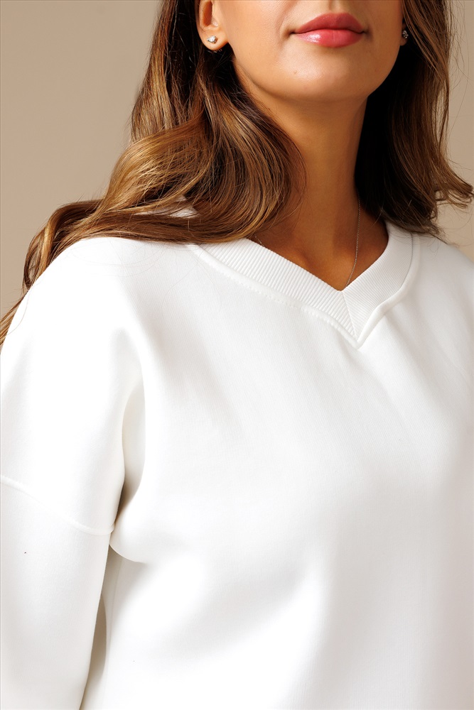 Представляем Вам стильный и комфортный свитшот женский от Raposa, который станет незаменимой вещью в Вашем осеннем и зимнем гардеробе 2026. Кофта теплая выполнена в модной оверсайз посадке, что делает ее универсальной и удобной для любой фигуры, в том числе для девочки подростка и полных женщин больших размеров плюс сайз plus size до 54 размера, а также для беременных будущих мам. Свитшот на флисе y2k сшит из мягкого трикотажного футера с начесом, который обеспечит Вам тепло и уют в прохладные дни на осень - зиму. Отсутствие капюшона придает модели лаконичный и нарядный вид, а свободный крой не сковывает движений, что делает его идеальным вариантом для школы, спорта или просто для повседневной носки. Благодаря своему базовому дизайну и универсальному белому цвету, свитшот укороченный спереди и удлиненный сзади легко сочетается с любой одеждой, создавая уютный и комфортный образ. Свитшот белый со спущенными длинными рукавами реглан и манжетами из кашкорсе держит форму и не растягивается. Натуральный хлопок в составе футер 3 нитка приятен к телу и позволяет коже дышать, а бережная стирка при 30 градусах сохранит универсальный джемпер в первоначальном виде надолго. Этот теплый однотонный худи толстовка на осень, на зиму станет Вашим любимым спутником в прохладную погоду как спортивный, так и офисный аутфит. Кофточка актуального оттенка молочный идеально подойдет для фотосессии family look, для прогулок или отдыха на природе. Функциональный джемпер с v образным вырезом в современном молодежном стиле спорт шик или кэжуал уместен как школьный дресс код. Предварительно постирайте кофта свитшот пинтерест pinterest, чтобы удалить лишний начес с внутренней стороны. Не стоит беспокоиться, если внутри начнут образовываться небольшие катышки это не является дефектом. При соблюдении рекомендаций по уходу он будет выглядеть как новый долгое время, не скатается и не сядет.