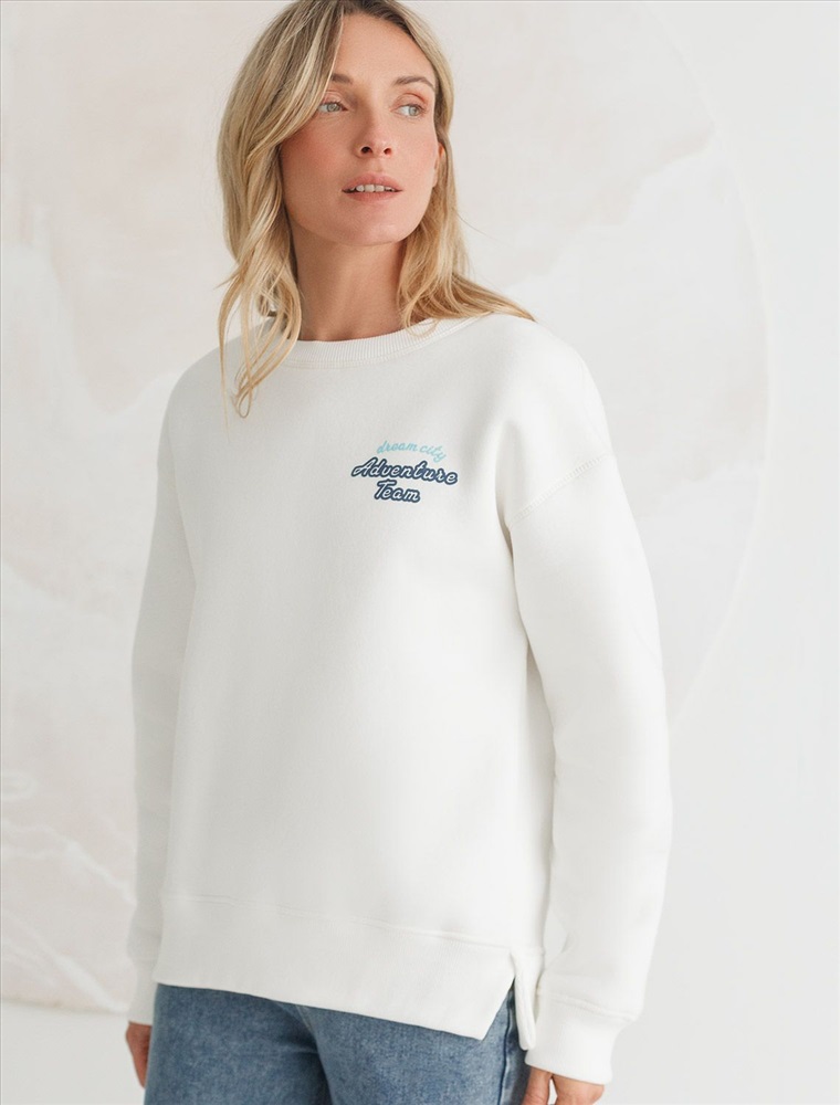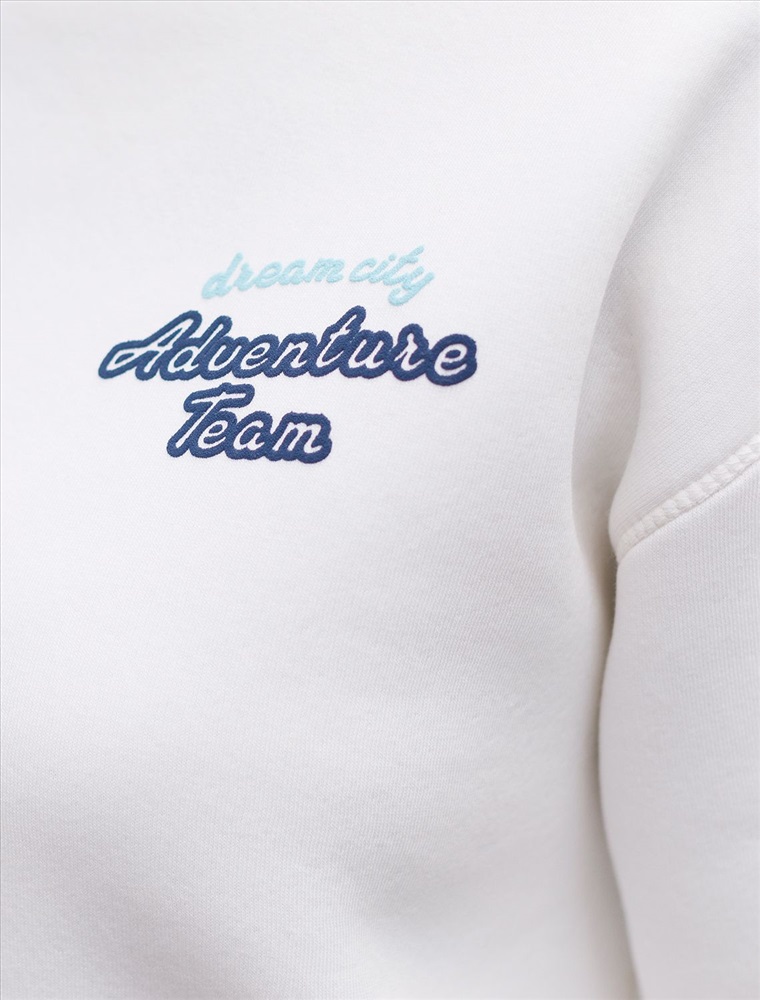 Плотность: 320 Г/м2 Параметры модели на первом фото: Рост 170, бюст 89, талия 63, бедра 92 Сочетается с артикулами: D44.133, D44.149 Свитшот с круглым воротом выполнен из премиального футера трехнитки с теплым начесом. Модель дополнена фактурным лаконичным принтом. Перевод: «Клуб искателей приключений в городе мечты». Свободный крой подходит для любой фигуры и впишется в любой гардероб. Комментарии к товару