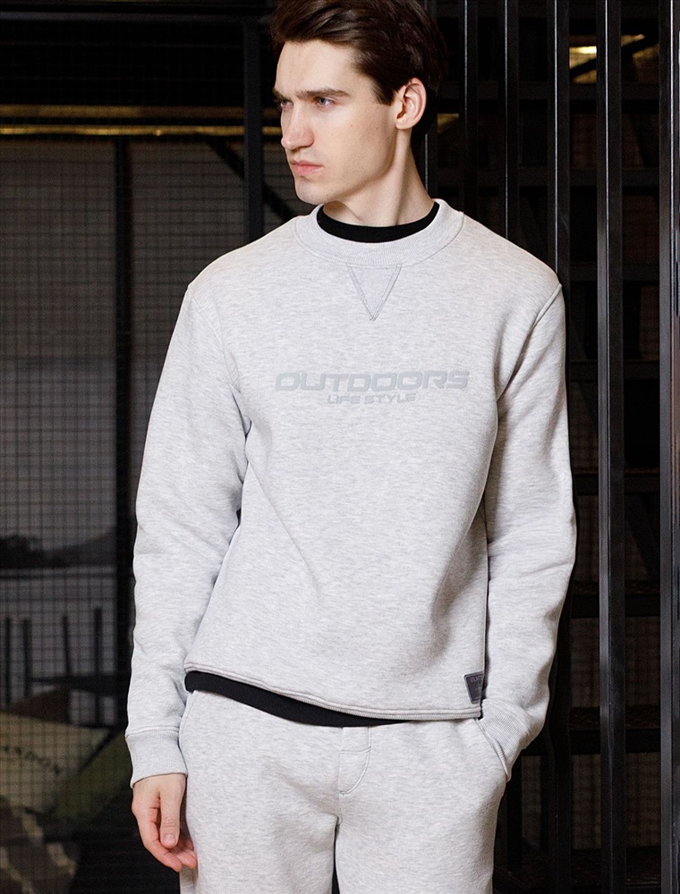 Плотность: 320 Г/м2 Параметры модели на первом фото: Рост 190, бюст 108, талия 87, бедра 104 Свитшот с круглым воротом выполнен из премиального эластичного футера трехнитки с теплым начесом. Модель дополнена фактурным лаконичным принтом с матовым покрытием и нашивкой с логотипом бренда. Свободный силуэт не сковывает движений. Сочетается в костюме с брюками U44.006 Комментарии к товару
