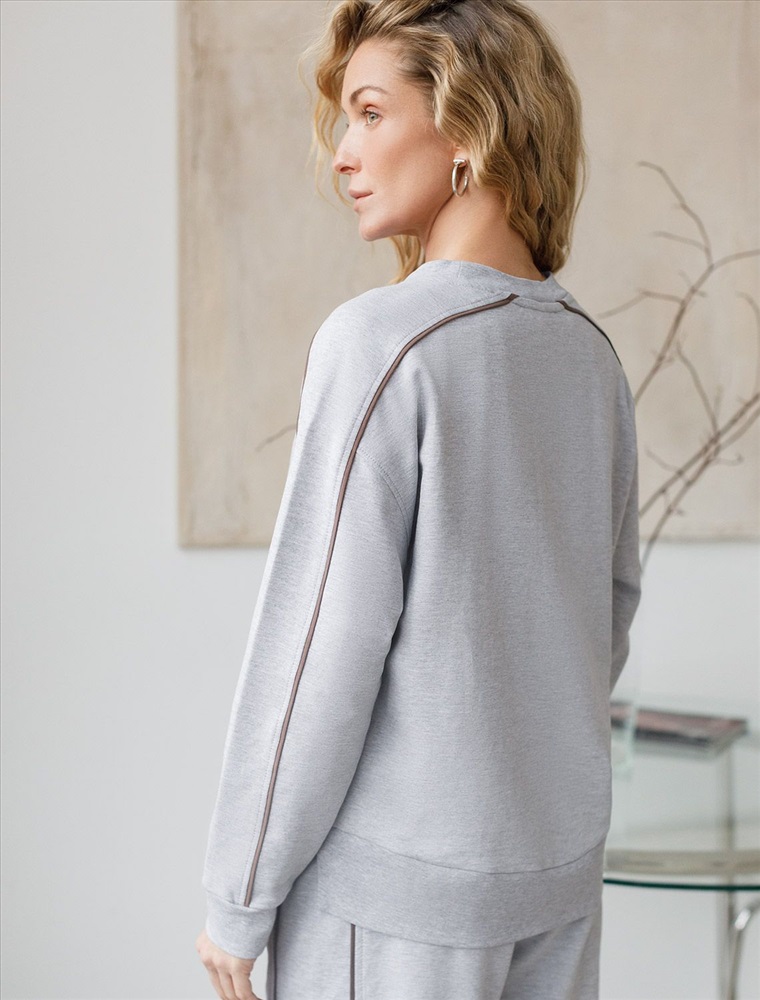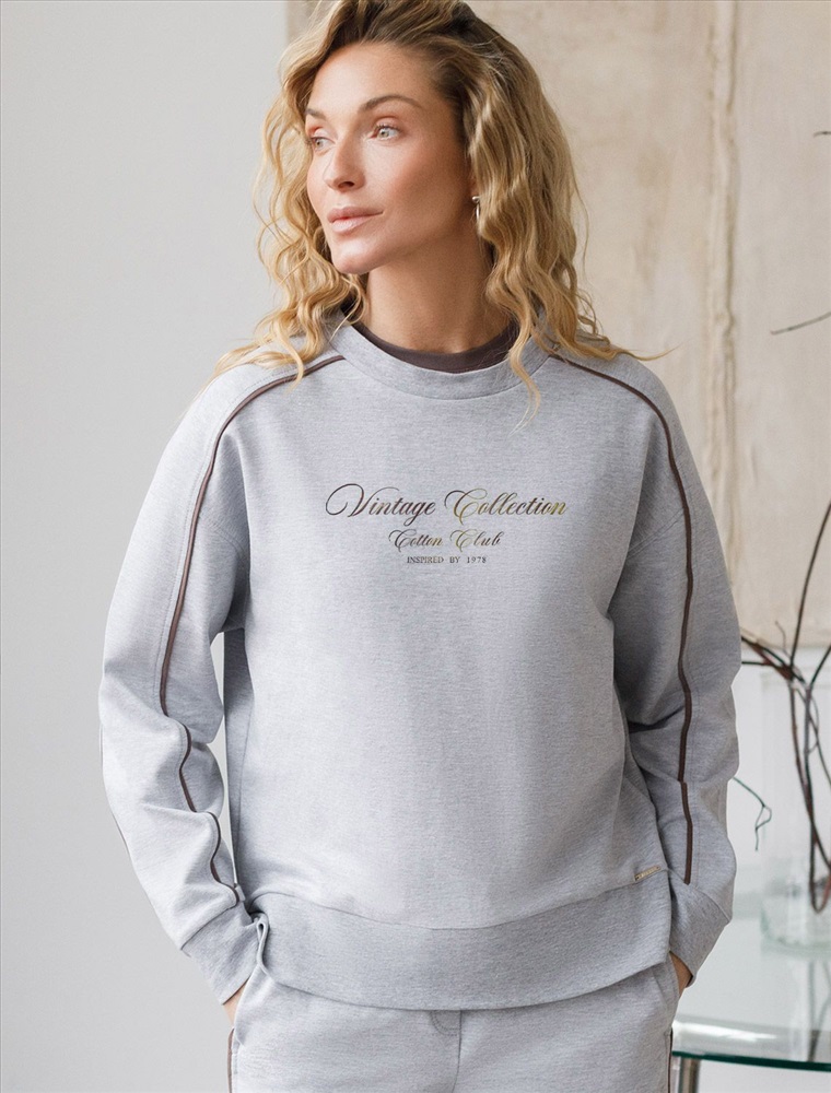 Плотность: 240 Г/м2 Размер товара на первом фото: 42 Стильный свитшот светло-серого цвета с эффектом меланж из премиального футера двухнитки с эластаном сочетает в себе комфорт и оригинальность. Джемпер выполнен из натурального хлопка, который обеспечивает мягкость и дышащие свойства ткани. Нежный материал дарит ощущение уюта в любое время года, а премиальное качество изготовления гарантирует долговечность и сохранение формы после множества стирок. Особенность изделия — спущенная линия плеча и аккуратные разрезы, которые добавляют современный акцент и делают образ более выразительным. Лампасы на рукавах добавляют наряду динамики и выделяют этот свитшот на фоне классических решений. Принт в виде надписи придает индивидуальность, позволяя выделиться без лишней вычурности. Перевод надписи: Vintage collection Cotton club Inspired by 1978 - Винтажная коллекция Cotton Club, вдохновленная 1978 годом. Дополнен металлическим логотипом бренда. Представлена широкая размерная линейка, включая маленькие и большие размеры, что позволяет подобрать идеальный вариант для разной фигуры и роста. Этот уютный свитшот отлично подходит для повседневной носки благодаря своей комфортной посадке и мягкой текстуре. Он станет универсальным элементом гардероба, легко сочетающимся с различными стилями одежды. Свободный джемпер из футера станет отличным выбором для активного отдыха, обеспечивая стильный внешний вид и удобство в прохладное время года. Рекомендуем сочетать с артикулами: D44.164, D44.166, D49.138, D49.165 Комментарии к товару
