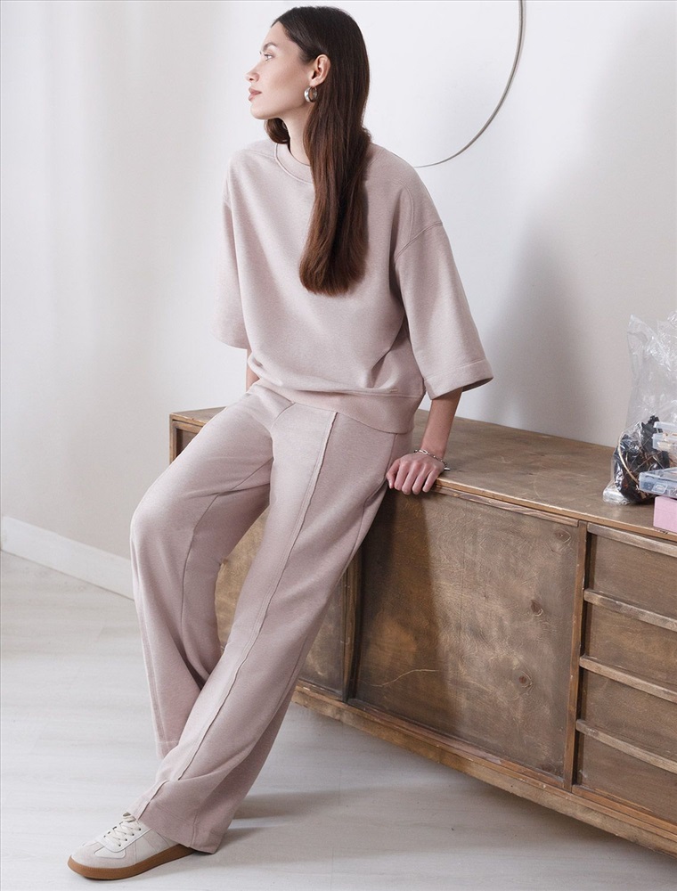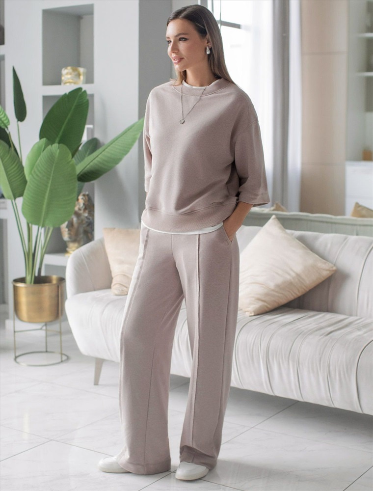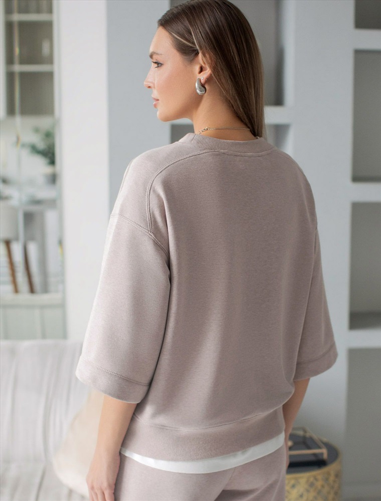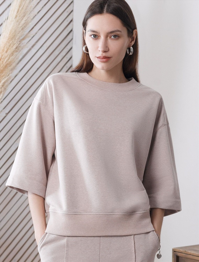 Плотность: 320 Г/м2 Свободный свитшот цвета макиато с эффектом меланж выполнен из мягкого петельчатого футера двухнитки с добавлением эластана, что обеспечивает комфортную посадку и комфорт. Материал отличается мягкостью и приятной текстурой, позволяя коже дышать и обеспечивая максимальное удобство при носке, а так же хорошей износостойкостью и сохраняет форму даже после многочисленных стирок. Круглый ворот и широкие рукава средней длины придают свитшоту стильный и современный вид и делают образ расслабленным и непринужденным, такой вариант отлично сядет на большие размеры, подчеркивая достоинства фигуры. .Джемпер идеально подходит для повседневной носки и отлично подойдет тем, кто ценит удобство и свободу движений без компромиссов по стилю. Этот свитшот станет отличным выбором в прохладную погоду в комплекте с бомбером D49,141 или уютным дополнением к домашнему образу в комплекте с брюками D44.157 Комментарии к товару