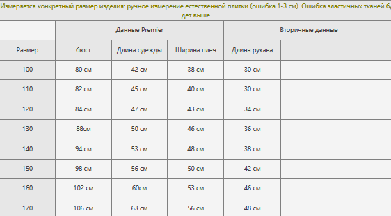 Размер: 100, 110, 120, 130, 140, 150, 160, 170