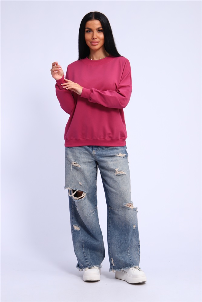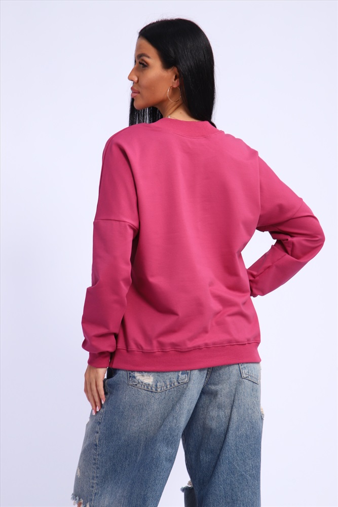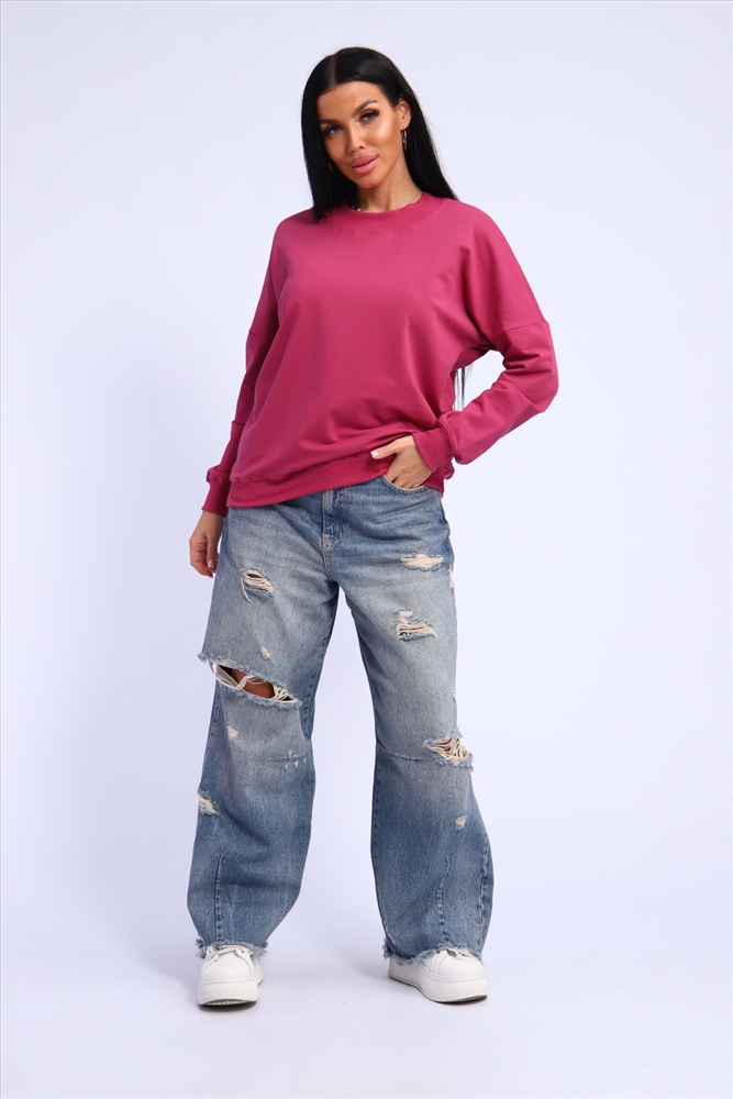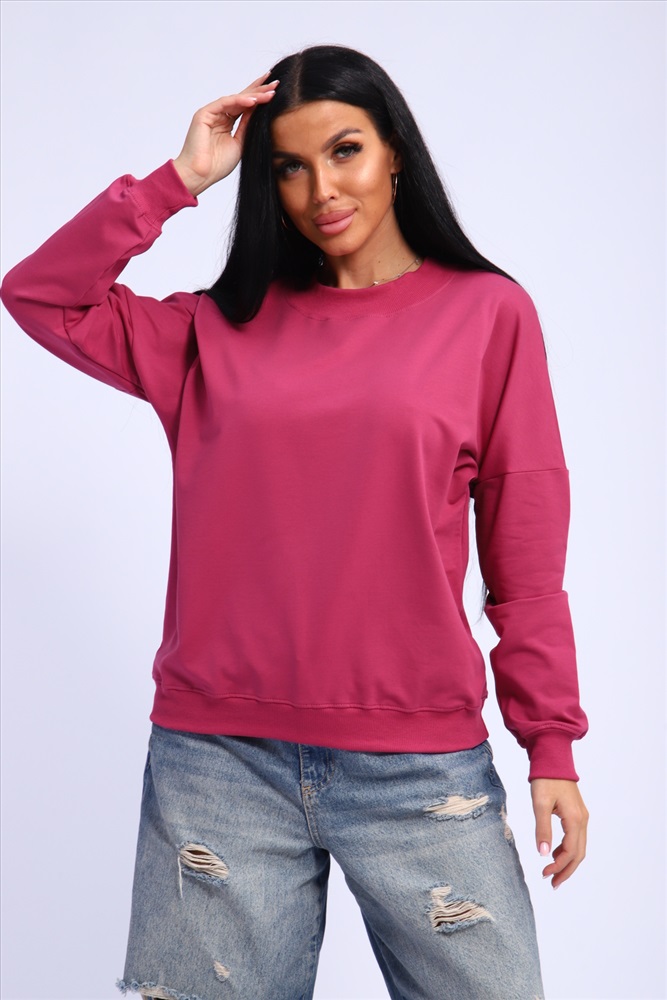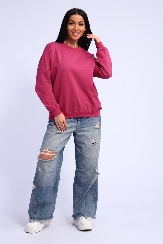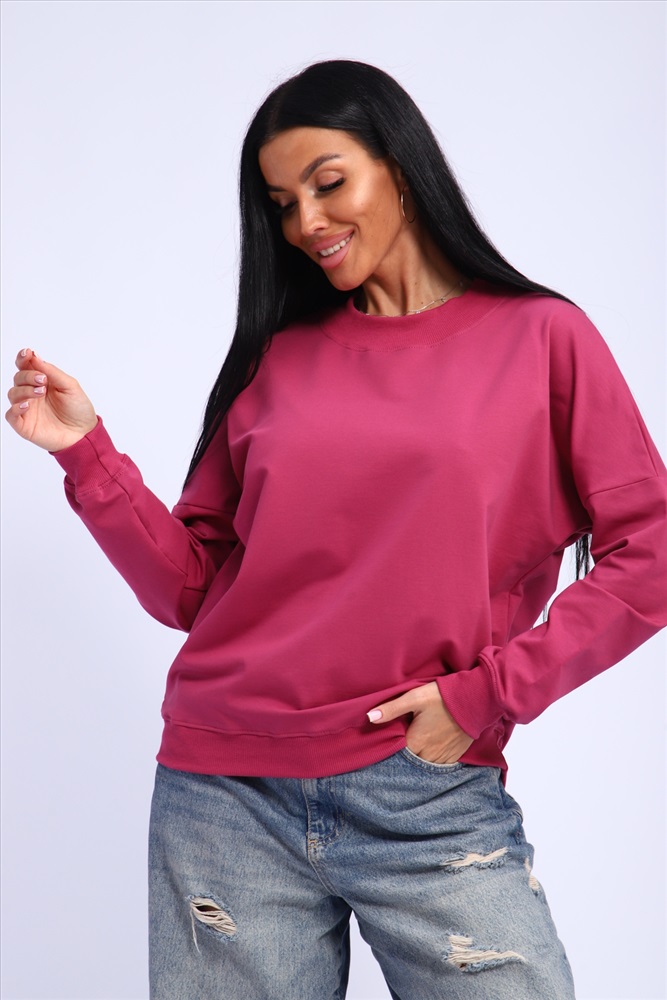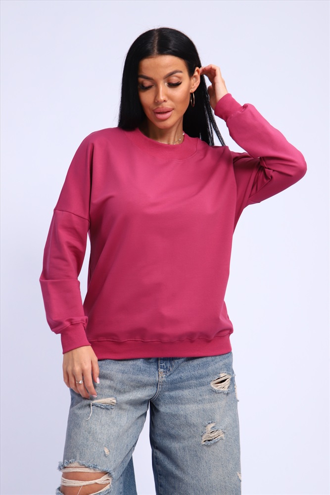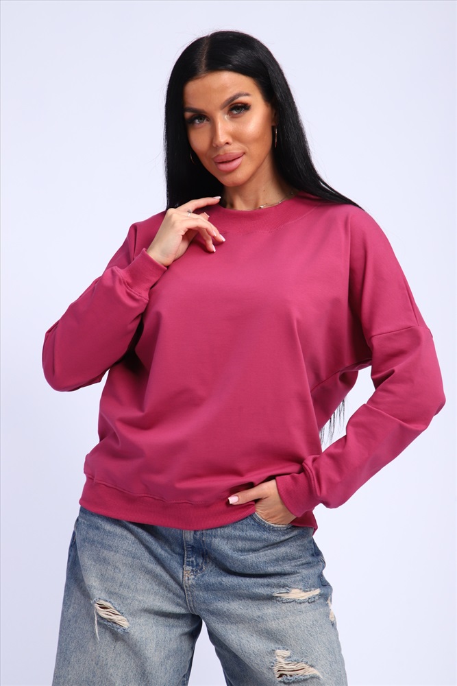 Застежка: без застежки Свитшот женский свободного кроя, рукав на спущенном плече.