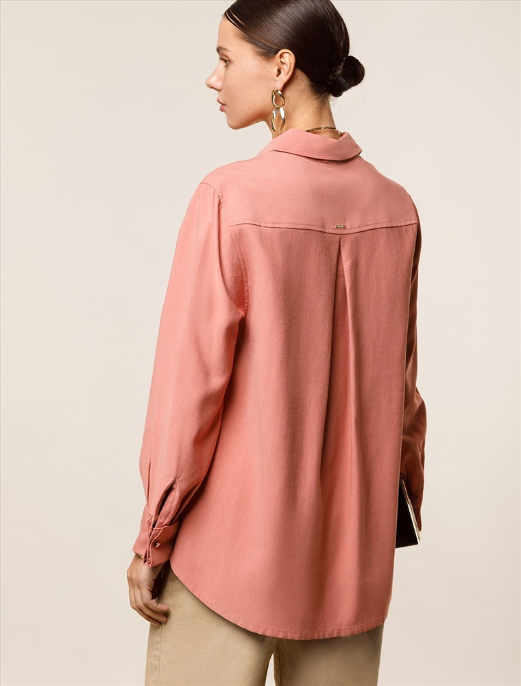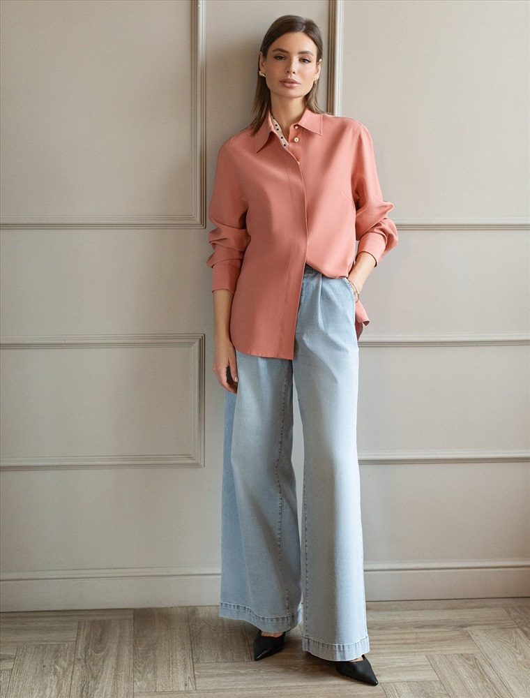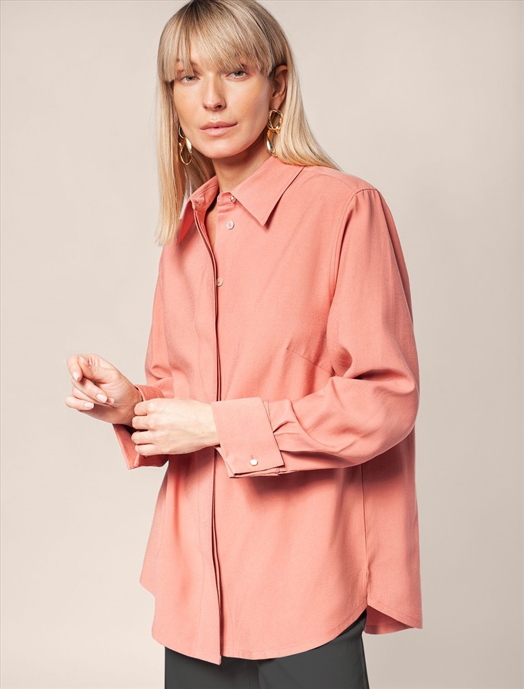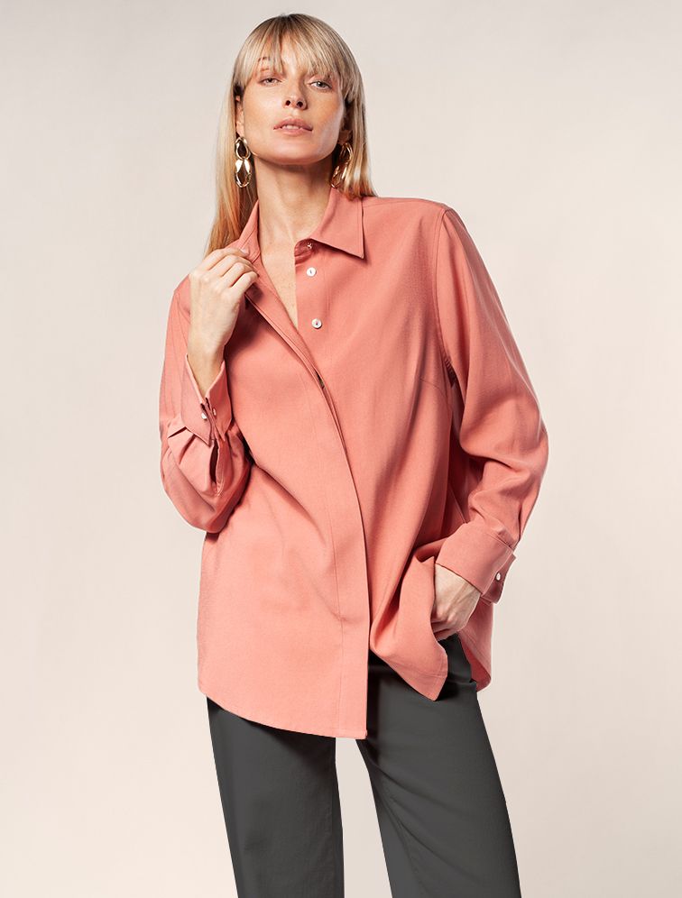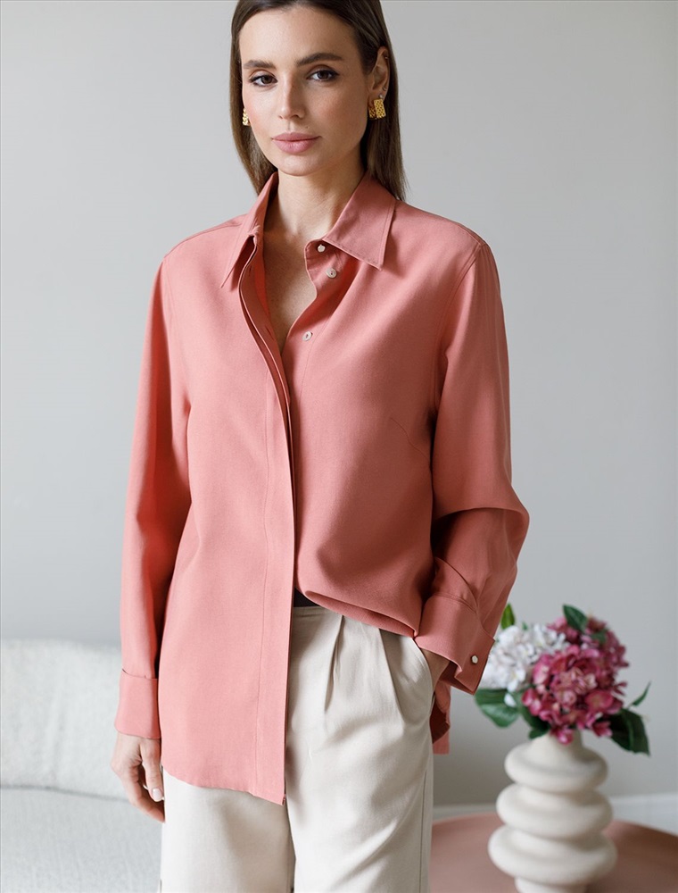 Параметры модели на первом фото: Рост 170, бюст 89, талия 63, бедра 92 Свободная блузка выполнена из плотного лиоцелла. Модель дополнена золотистыми пуговицами-запонками с эмалью. Основная застежка-планка на потайные пуговицы из натурального перламутра. Добавление синтетических волокон в составе изделия предотвращает сминаемость. На спинке металлический логотип бренда. Комментарии к товару