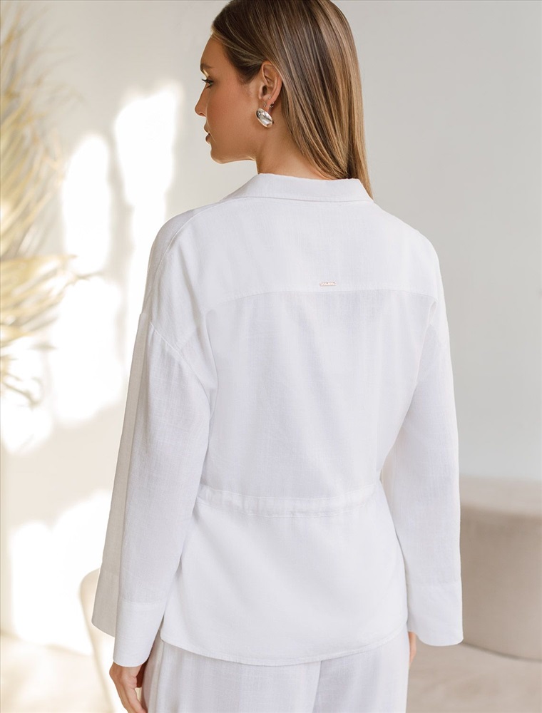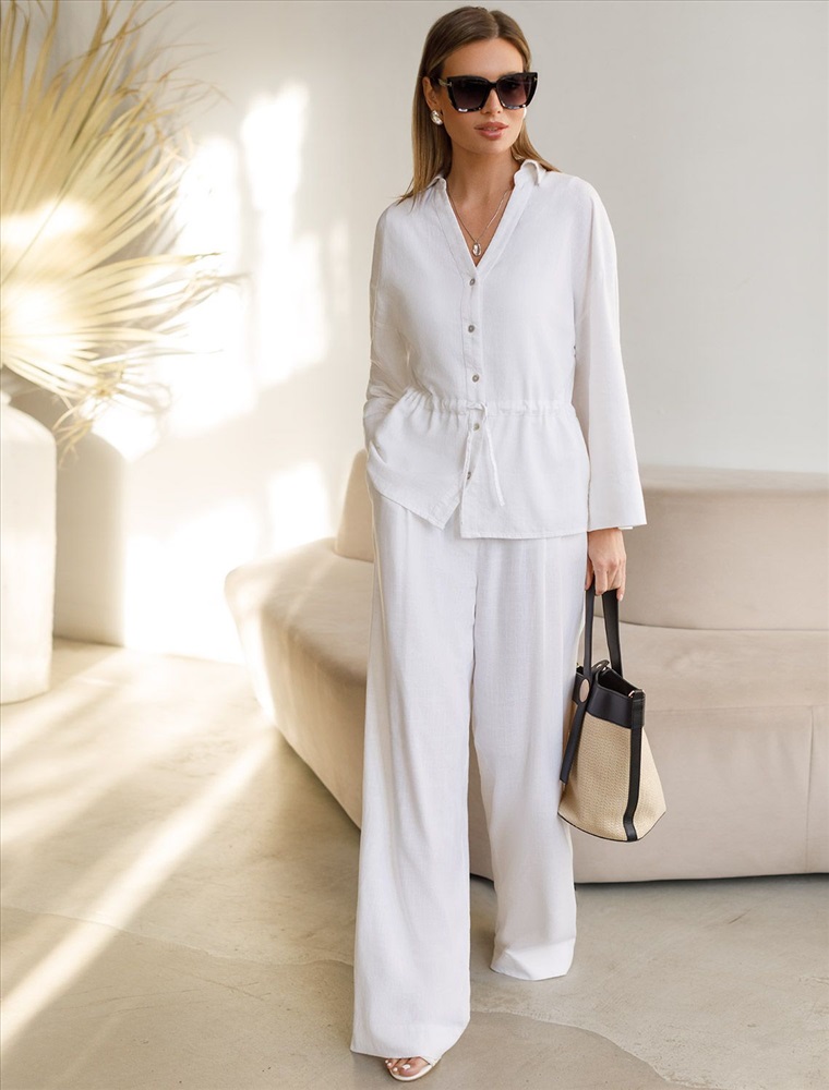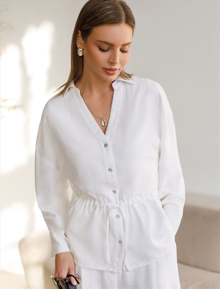 Плотность: 200 Г/м2 Свободная блузка белого цвета с кулиской на талии изо льна с вискозой, плотностью 200 Г/м2 - идеальный вариант для весны и лета. Сочетание льна и вискозы обеспечивает комфорт и прохладу в жаркие дни. Материал хорошо драпируется и мягко прилегает к фигуре, создавая струящиеся складки. Эта эффектная блузка сочетает в себе современный крой, удобство и стиль. Отложной воротник придает образу элегантность, спущенная линия плеча — модный и расслабленный акцент, а широкий рукав создает красивый и воздушный силуэт. Талия оформлена утягивающей кулиской, что позволяет регулировать посадку — создайте акцент на поясе для женственного силуэта или носите свободно для комфорта, отлично скроет возможные недостатки. Пуговицы по всей длине делают льняную рубашку особенно практичной, вы можете носить ее растегнутой, как верхний слой. Эта легкая блузка подходит для повседневного гардероба, смотрится красиво и стильно, обеспечивая максимальное удобство, подойдет и на большие размеры. Рекомендуем сочетать с артикулом: D24.308 Комментарии к товару