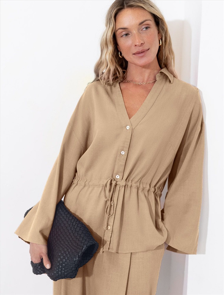 Плотность: 200 Г/м2 Свободная блузка бежевого цвета с кулиской на талии изо льна с вискозой, плотностью 200 Г/м2 - идеальный вариант для весны и лета. Сочетание льна и вискозы обеспечивает комфорт и прохладу в жаркие дни. Материал хорошо драпируется и мягко прилегает к фигуре, создавая струящиеся складки. Эта эффектная блузка сочетает в себе современный крой, удобство и стиль. Отложной воротник придает образу элегантность, спущенная линия плеча — модный и расслабленный акцент, а широкий рукав создает красивый и воздушный силуэт. Талия оформлена утягивающей кулиской, что позволяет регулировать посадку — создайте акцент на поясе для женственного силуэта или носите свободно для комфорта, отлично скроет возможные недостатки. Пуговицы по всей длине делают льняную рубашку особенно практичной, вы можете носить ее растегнутой, как верхний слой. Эта легкая блузка подходит для повседневного гардероба, смотрится красиво и стильно, обеспечивая максимальное удобство, подойдет и на большие размеры. Рекомендуем сочетать с артикулом: D24.308 Комментарии к товару