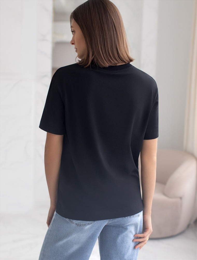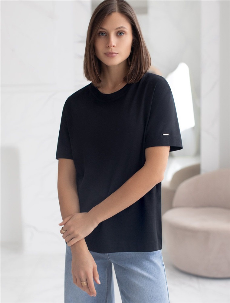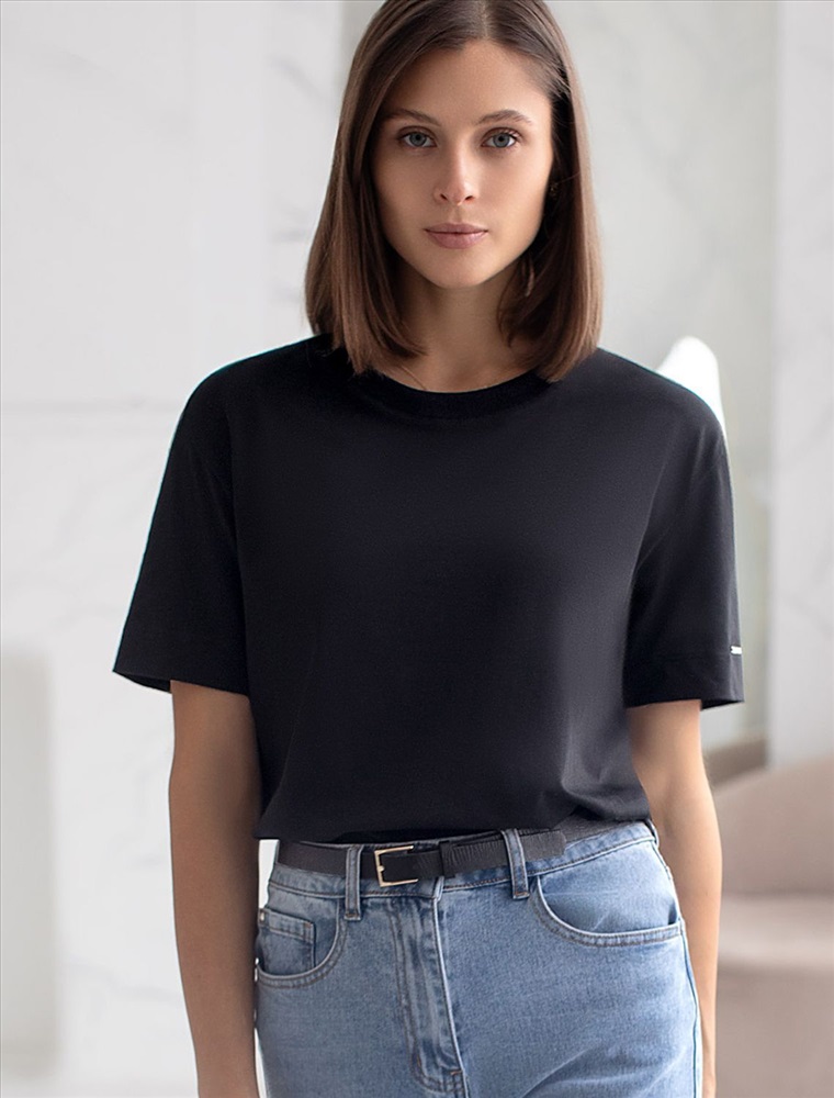 Плотность: 170 Г/м2 Свободная футболка черного цвета из премиального хлопка плотностью 170 Г/м2 станет универсальным решением для создания стильного и комфортного образа. Футболка прямого кроя идеально садится на любую фигуру, обеспечивая свободу движений. Дышащая ткань из натурального хлопка делает изделие легким и приятным к телу, что особенно важно в теплое время года, отлично пропускает воздух и не вызывает дискомфорта при длительном ношении. Модная футболка добавляет яркости образу, сохраняя баланс между минимализмом и выразительностью. Базовая футболка хорошо держит форму, немного тянется благодаря качественной плотной ткани с добавлением эластана, что гарантирует долговечность даже при частой носке. Подходит для больших размеров до 56 включительно, свободная посадка позволяет чувствовать себя уверенно в любой ситуации. Это выбор для тех, кто ценит удобство без ущерба стилю. Мягкость материала делает футболку подходящей даже для беременных женщин или обладательниц чувствительной кожи. Актуальные цвета подчеркивают современность футболки, делая ее отличным вариантом как для повседневной носки, так и более праздничных случаев. Круглый вырез горловины дополняет общий минималистичный дизайн изделия, создавая аккуратный силуэт. Такой фасон уместен для работы в офисе, для городского стиля, дома, в неформальной обстановке или даже на деловых встречах. Комментарии к товару