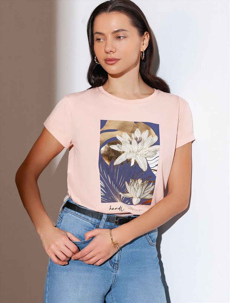 Плотность: 170 Г/м2 Модная футболка пудрового цвета привлекает внимание своим интересным дизайном и ярким принтом. Благодаря прямому крою изделие комфортно садится на любую фигуру, в том числе на большие размеры, и не сковывает движений. Круглый вырез подчеркивает современный стиль, а натуральный материал из хлопка с добавлением эластана обеспечивает удобство в повседневной носке и приятные тактильные ощущения. Прочность и износостойкая структура сохраняет первоначальную форму футболки после множества стирок. Рукава имеют аккуратные подгибы, что придает изделию завершенность и помогает сохранять аккуратный внешний вид. Принт в виде цветов и надписи нанесен красками с устойчивым покрытием, перевод надписи: Handle with care - Обращаться с осторожностью. Стильная футболка гармонично вписывается в любой гардероб и подойдет для прогулок, отдыха дома или неформальных встреч. Благодаря особенностям кроя модель хорошо сидит, скрывая недостатки и подчеркивая достоинства. Удобная футболка идеально сочетается с базовыми вещами, позволяя создавать новые интересные образы каждый день. Комментарии к товару