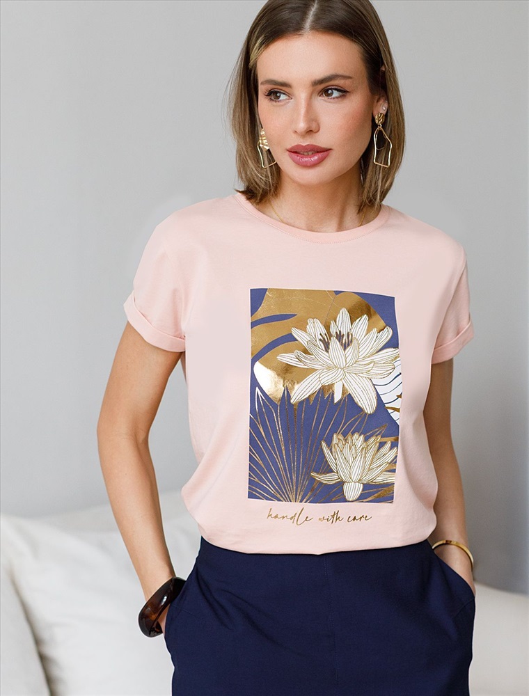 Плотность: 170 Г/м2 Модная футболка пудрового цвета привлекает внимание своим интересным дизайном и ярким принтом. Благодаря прямому крою изделие комфортно садится на любую фигуру, в том числе на большие размеры, и не сковывает движений. Круглый вырез подчеркивает современный стиль, а натуральный материал из хлопка с добавлением эластана обеспечивает удобство в повседневной носке и приятные тактильные ощущения. Прочность и износостойкая структура сохраняет первоначальную форму футболки после множества стирок. Рукава имеют аккуратные подгибы, что придает изделию завершенность и помогает сохранять аккуратный внешний вид. Принт в виде цветов и надписи нанесен красками с устойчивым покрытием, перевод надписи: Handle with care - Обращаться с осторожностью. Стильная футболка гармонично вписывается в любой гардероб и подойдет для прогулок, отдыха дома или неформальных встреч. Благодаря особенностям кроя модель хорошо сидит, скрывая недостатки и подчеркивая достоинства. Удобная футболка идеально сочетается с базовыми вещами, позволяя создавать новые интересные образы каждый день. Комментарии к товару