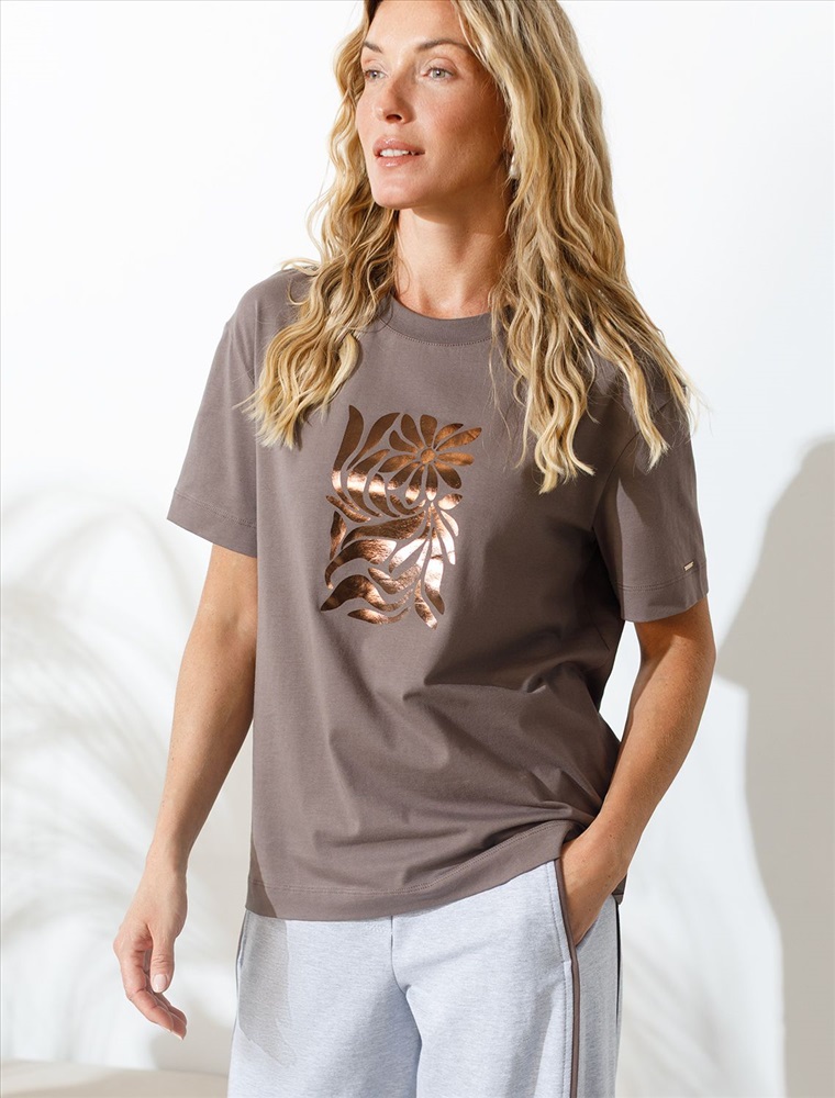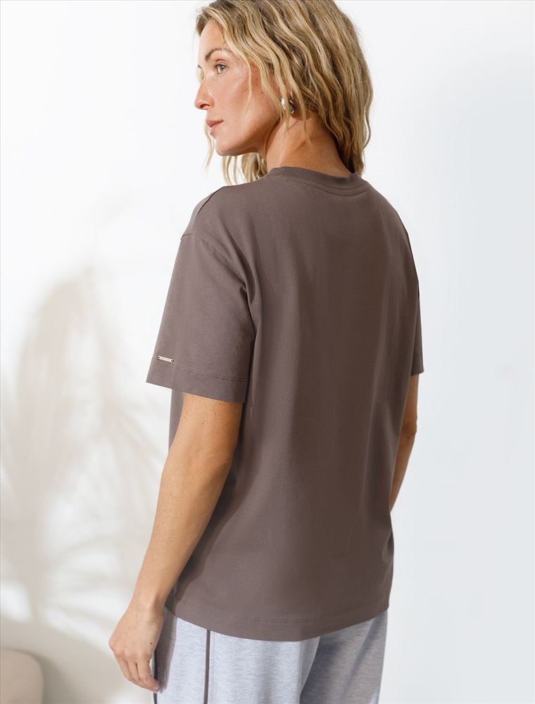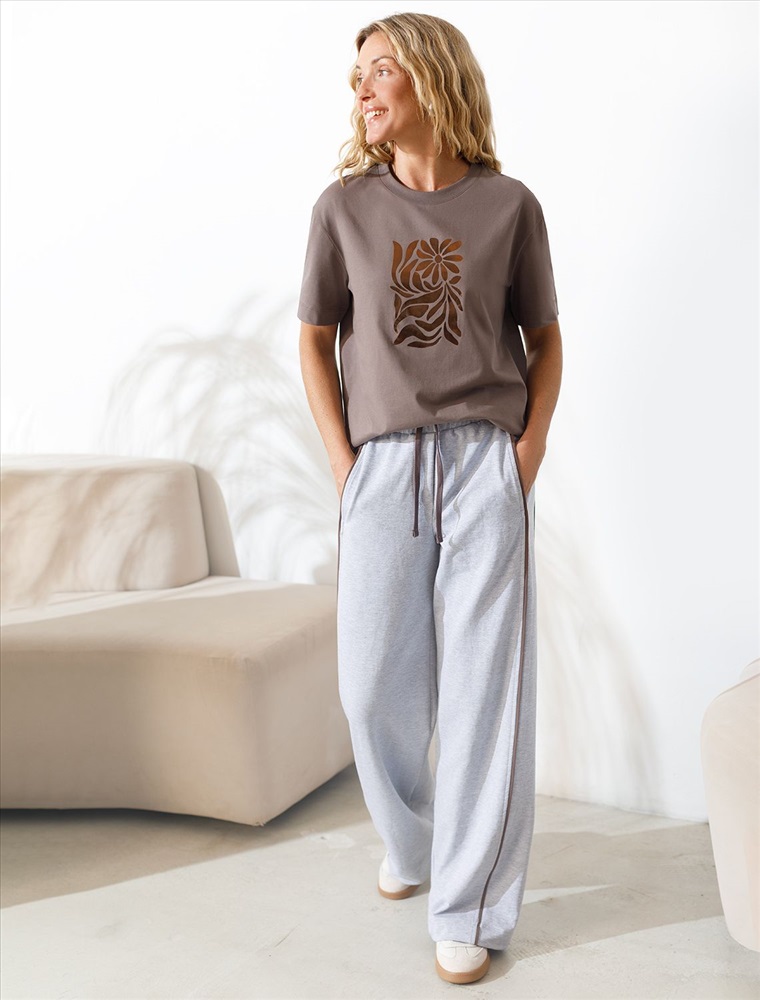 Плотность: 170 Г/м2 Размер товара на первом фото: 42 Модная футболка кофейного цвета привлекает внимание своим интересным дизайном и ярким принтом. Благодаря прямому крою изделие комфортно садится на любую фигуру, в том числе на большие размеры, и не сковывает движений. Круглый вырез подчеркивает современный стиль, а натуральный материал плотностью 170 Г/м2 из хлопка с добавлением эластана обеспечивает удобство в повседневной носке и приятные тактильные ощущения. Прочность и износостойкая структура позволяют сохранять свежий внешний вид после множества стирок. Принт в виде цветка в тон изделию нанесен красками с устойчивым покрытием. Стильная футболка гармонично вписывается в любой гардероб и подойдет для прогулок, отдыха или неформальных встреч. Благодаря особенностям кроя модель хорошо сидит, скрывая недостатки и подчеркивая достоинства. Яркая футболка идеально сочетается с базовыми вещами, позволяя создавать новые интересные образы каждый день. Комментарии к товару